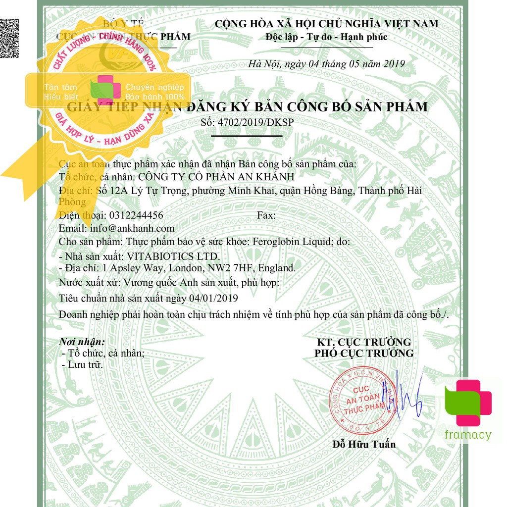 Sắt là một yếu tố vi lượng rất cần thiết cho cơ thể con người. Bổ sung đầy đủ sắt cho cơ thể sẽ giúp bạn luôn khỏe mạnh và tràn đầy năng lượng. Tình trạng thiếu hụt sắt có thể gây mệt mỏi, suy nhược cơ thể, thiếu máu, móng tay của bạn cũng trở nên dễ giòn, dễ gãy hơn, quá trình trao đổi chất bên trong cơ thể cũng bị ảnh hưởng, có thể gây ra một loạt những ảnh hưởng tiêu cực đến sức khỏe. Nhãn hiệu hàng đầu Anh Quốc Vitabiotics đã mang tới sản phẩm Sắt nước Feroglobin Liquid có chứa thành phần sắt đặc biệt, giúp tăng cường lượng hemoglobin để tái tạo hồng cầu trong máu, giúp duy trì hình thành máu, thay thế lượng máu mất đi trong chu kỳ hàng tháng, đồng thời tăng cường quá trình tạo hồng cầu để đáp ứng nhu cầu ngày càng cao của thai nhi trong quá trình mang thai của mẹ.