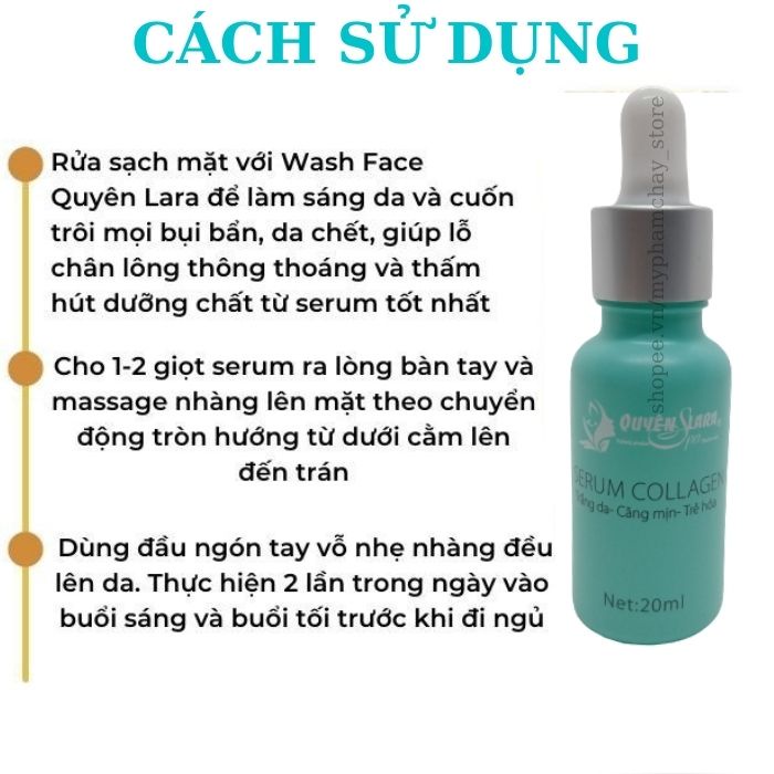 – Bước 1: Rửa sạch mặt với Wash Face Quyên Lara để làm sáng da và cuốn trôi mọi bụi bẩn, da chết, giúp lỗ chân lông thông thoáng và thấm hút dưỡng chất từ serum tốt nhất.