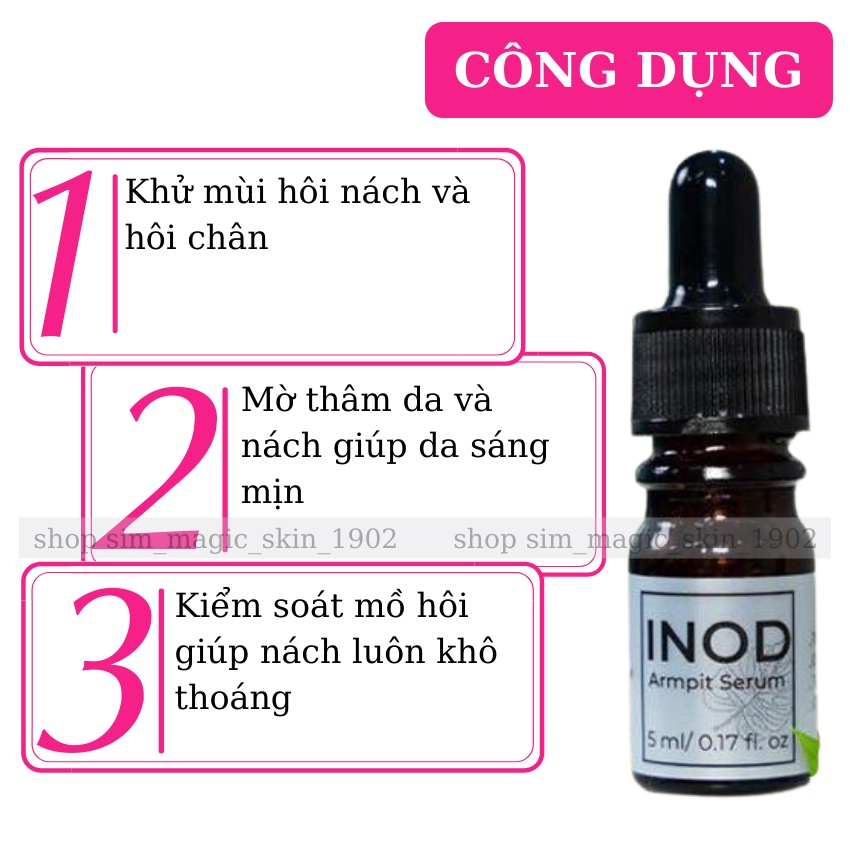 – Giảm thâm sạm vùng da dưới cánh tay tác dụng chính của lọ Serum hôi nách INOD là làm teo nhỏ các tuyến nhày hôi và mồ hôi ở nách, hạn chế việc tiết chất nhờn ra bên ngoài. Do đó mà tình trạng bệnh hôi nách cũng giảm theo. Với tác động kép ngăn mùi và giảm tiết mồ hôi. Sản phẩm nhận được sự hài lòng tuyệt đối từ người sử dụng.