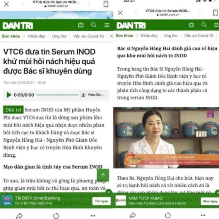 – Do đó, muốn khử sạch mùi hôi, Bs. Nguyễn Hồng Hải chia sẻ, nên dùng sản phẩm có công dụng kép vừa ngăn tiết mồ hôi và khử mùi hôi nách. Sự kết hợp hiệu quả này hiện đang có sản phẩm serum INOD vừa khử mùi hôi nách, vừa ngăn tiết mồ hôi, khử thâm nách hiệu quả