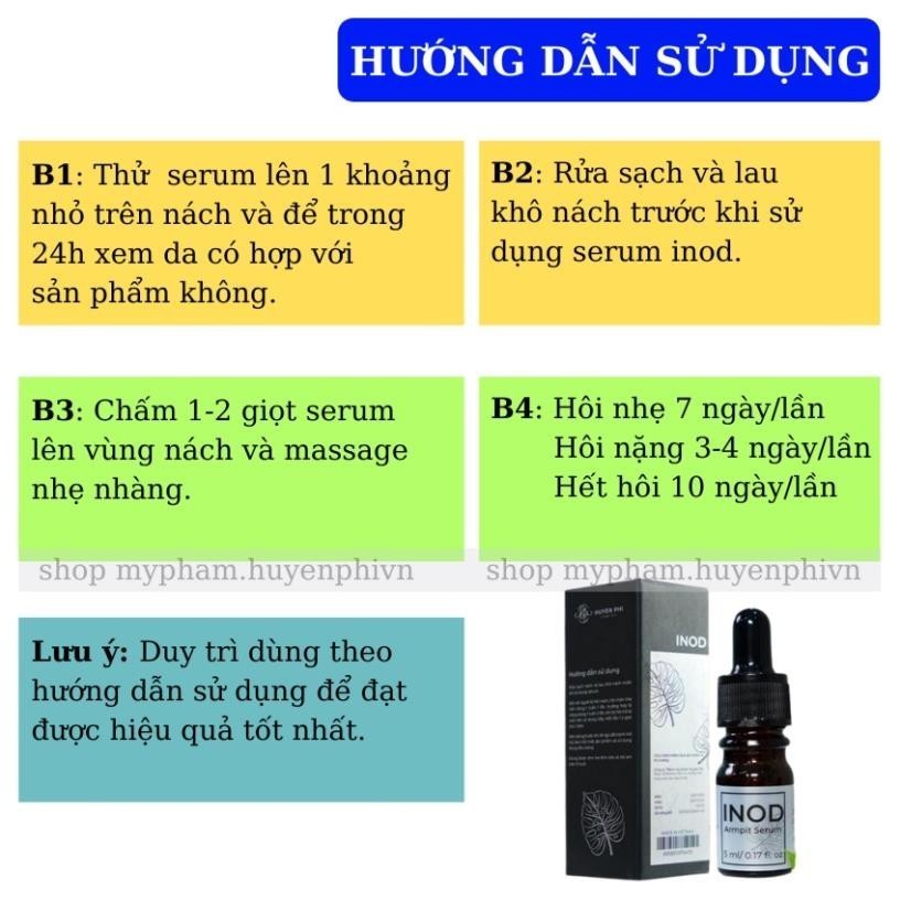 – Serum inod là sự kết tinh hoàn hảo, đạt tỷ lệ vàng giữa các tinh chất thảo dược quý hiếm. Đảm bảo hết hôi nách, hôi chân hiệu quả ngay sau lần đầu sử dụng