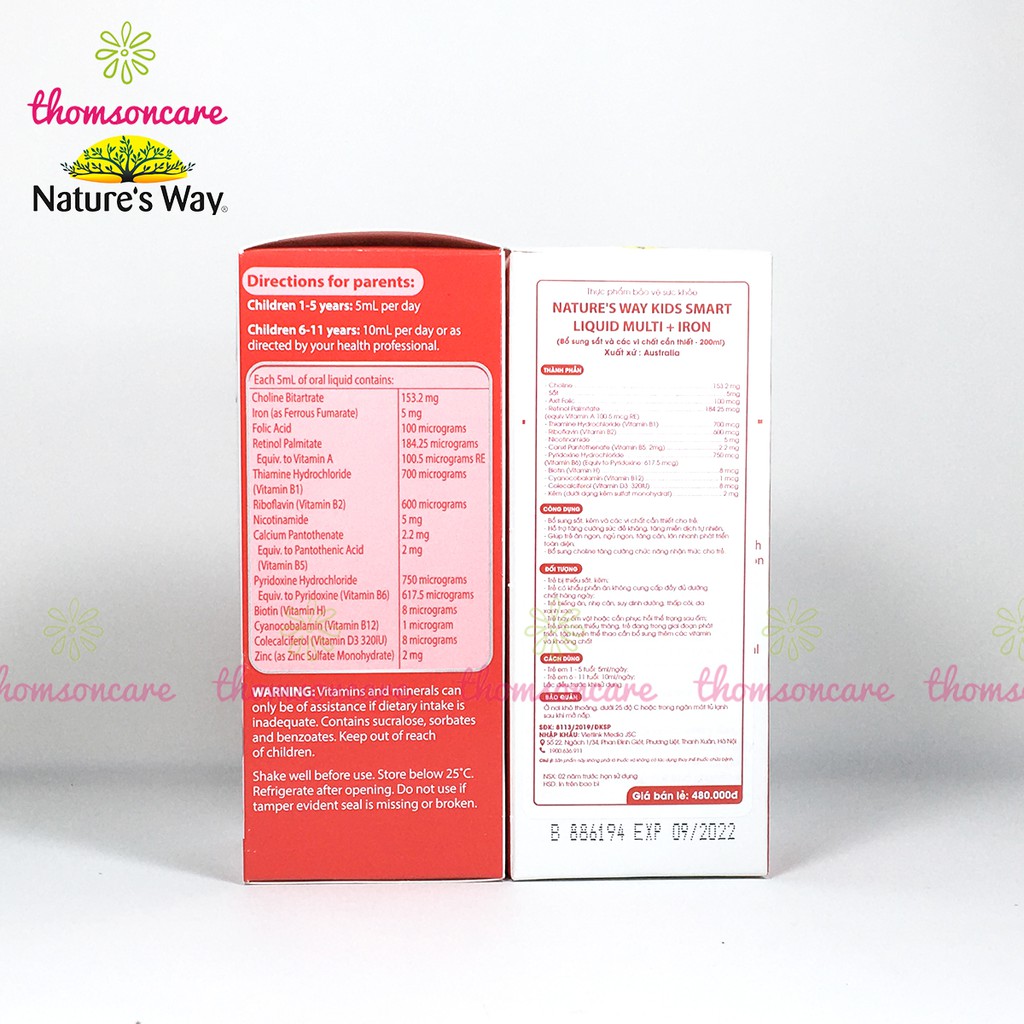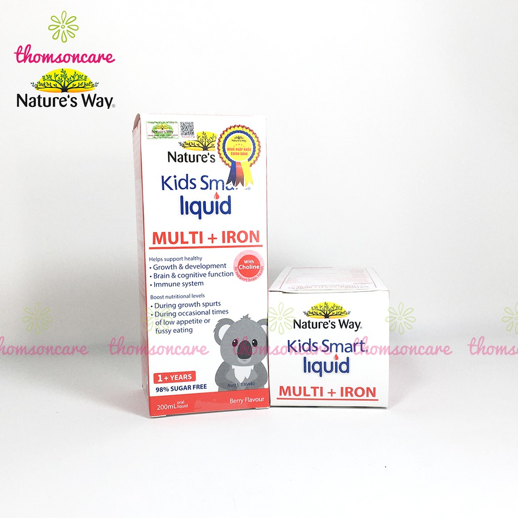Siro bổ sung sắt cho bé từ Úc Nature Way Kids Smart Liquid Iron lọ 200ml, tăng miễn dịch, bổ máu, bé chảy máu cam.