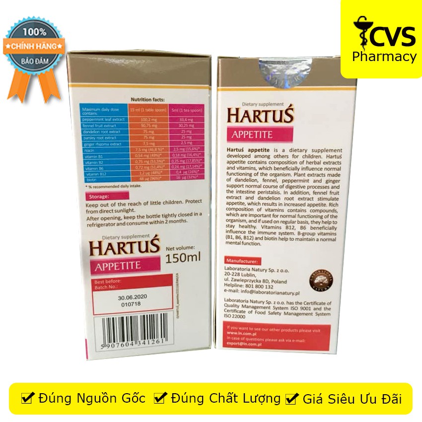 Siro Hartus Appetite 150ml – Cải thiện chứng biếng ăn của trẻ – cvspharmacy