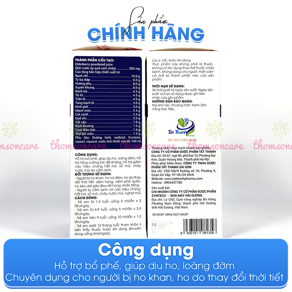 Phụ liệu: Đường kính, sorbitol, fructose, nipazil, nipazol, nước tinh khiết vừa đủ 100ml.
