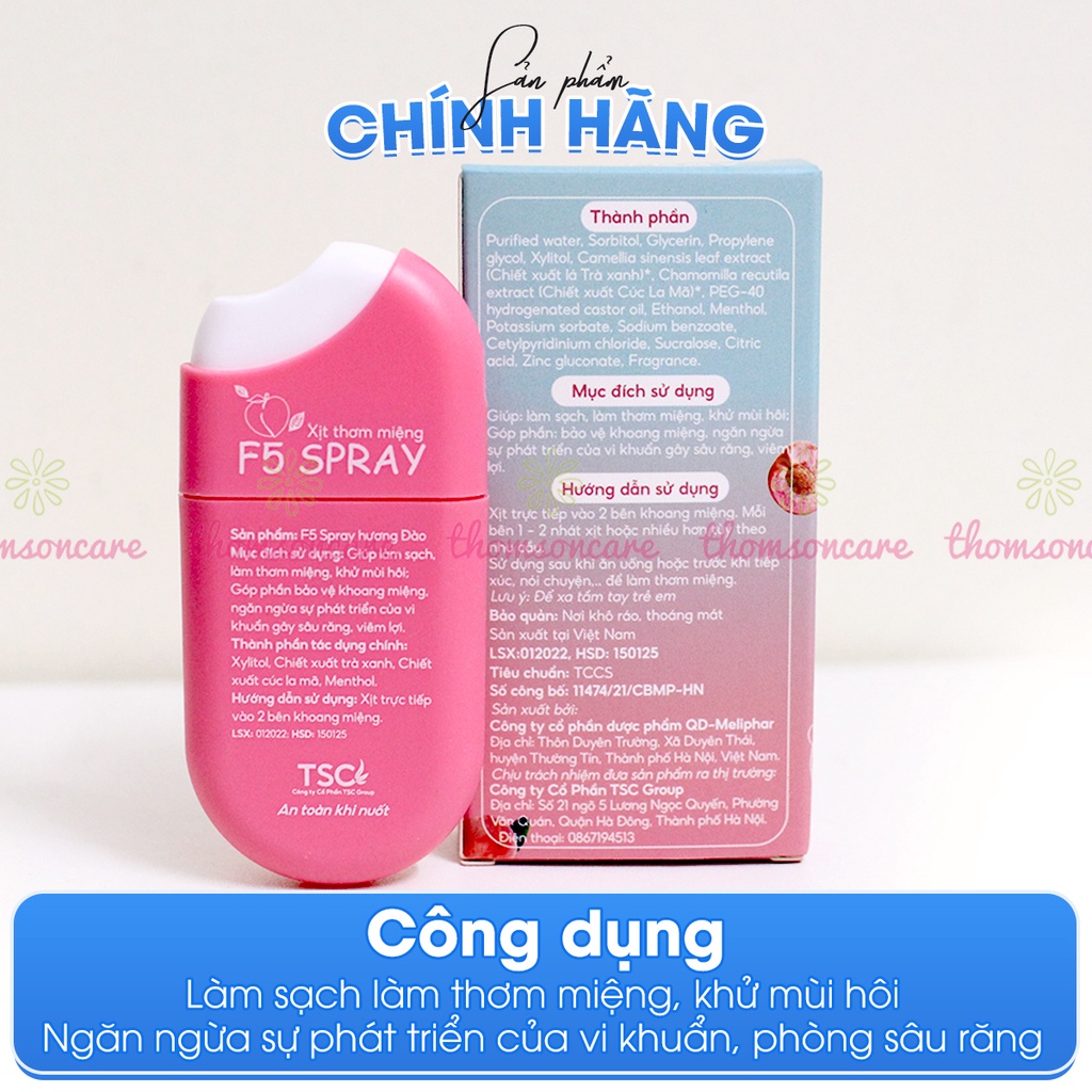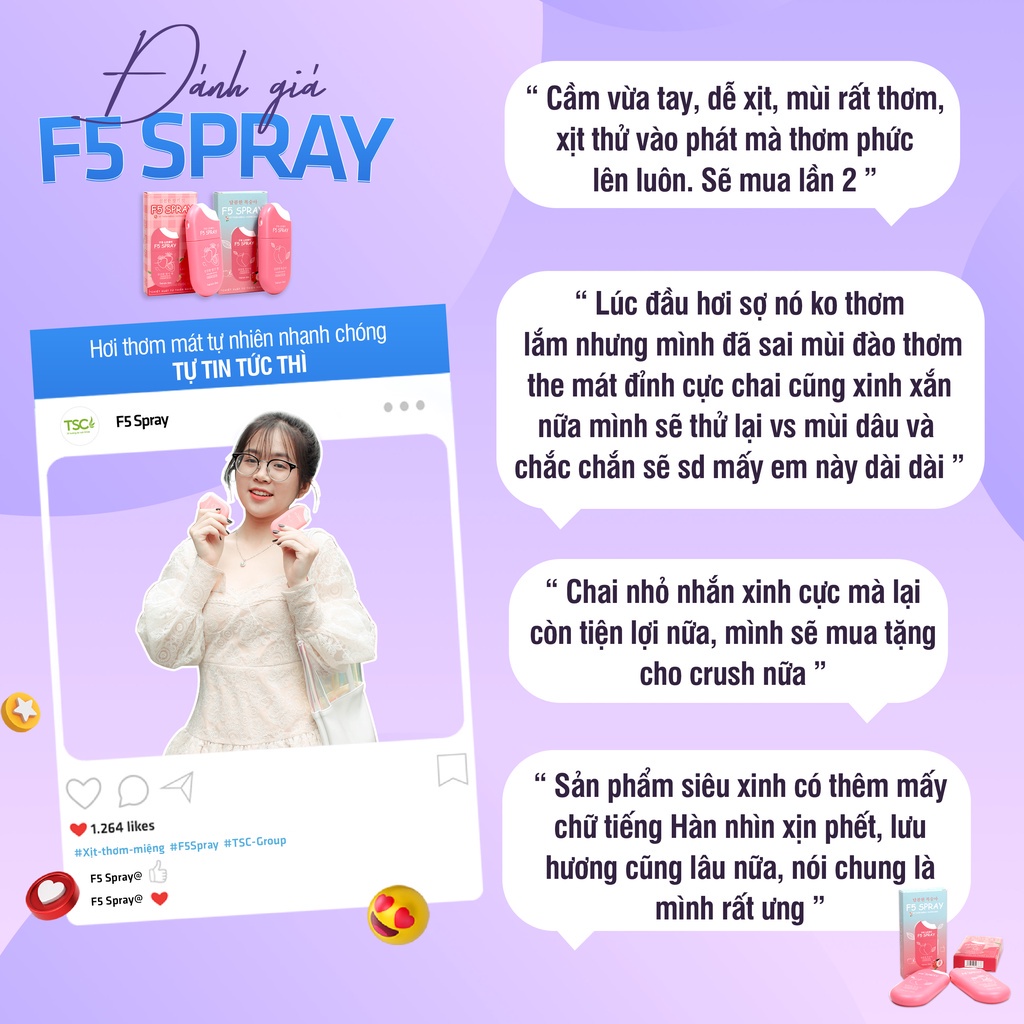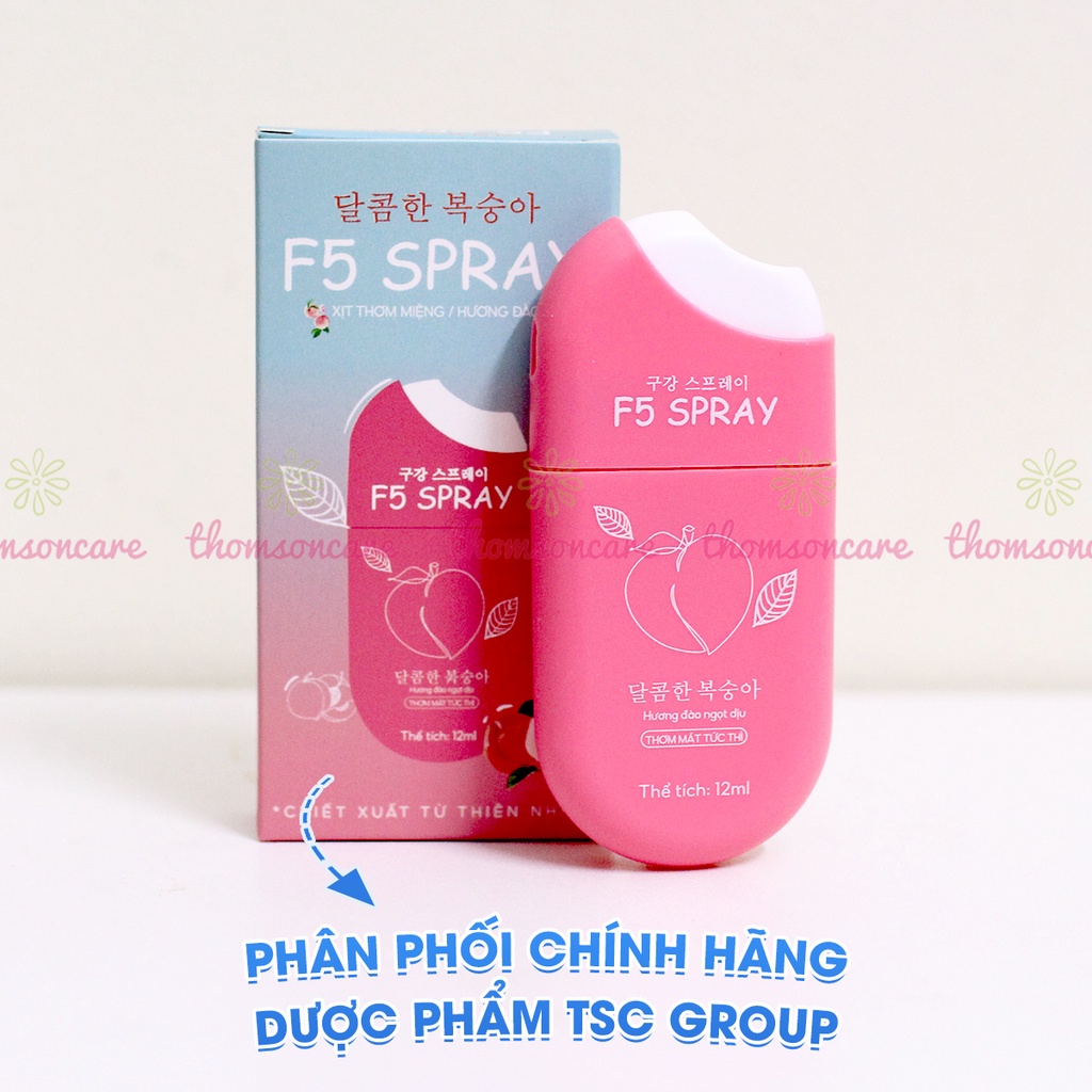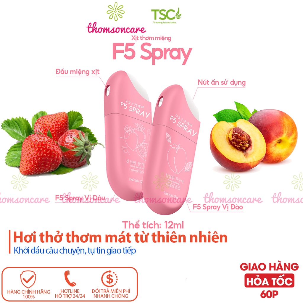 Sịt thơm miệng F5 Spray, giảm mùi hôi, ngừa sâu răng, tự tin khi giao tiếp hương vị đào, dâu, bạc hà.