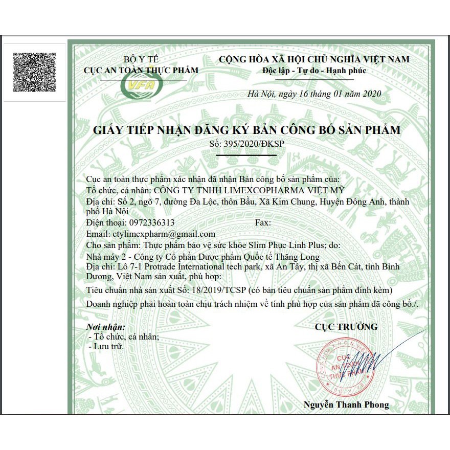 • Khi giảm cân đến mức vừa ý, có thể uống duy trì Slim Phục Linh mỗi tuần 01 viên