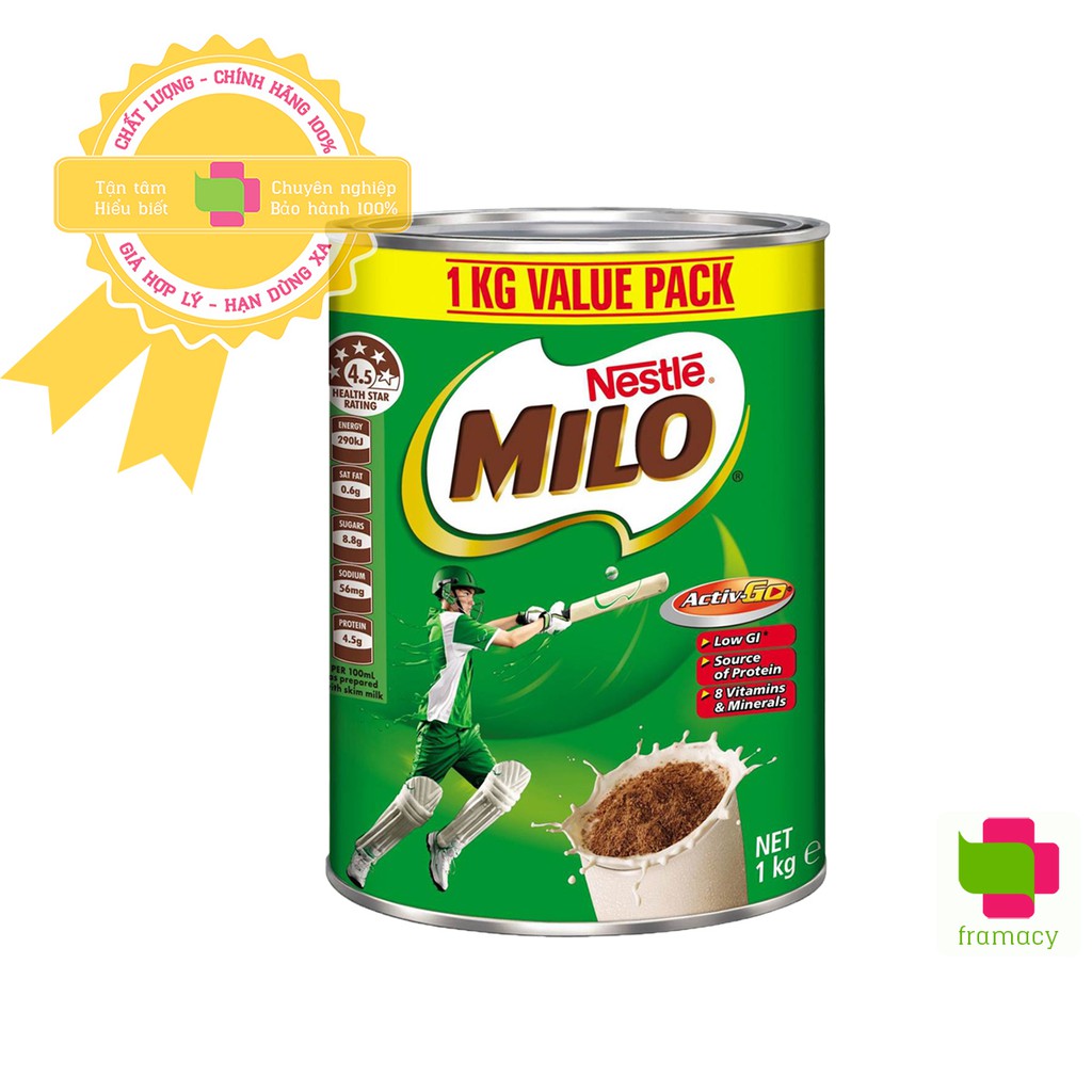 Sữa bột Nestle Milo Úc 1kg giúp tăng chiều cao, miễn dịch, phát triển trí não cho bé từ 2 tuổi và người lớn.