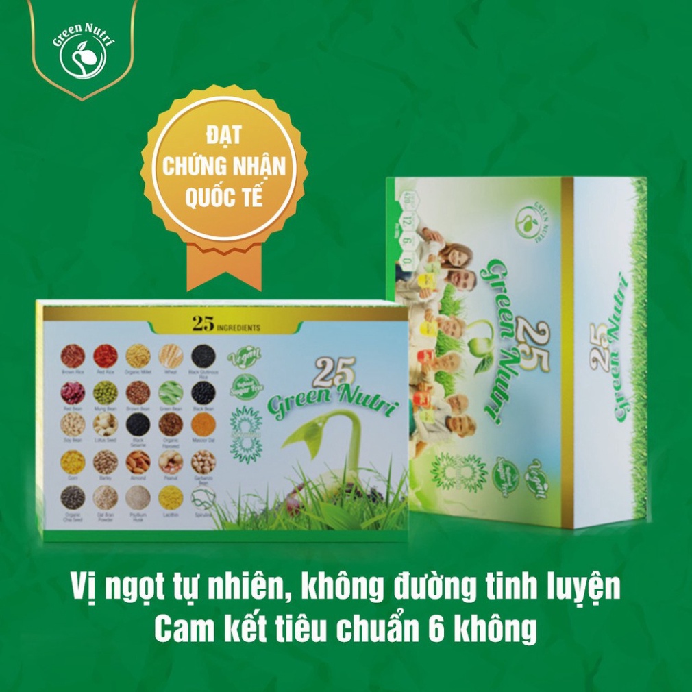 Sản phẩm nhập khẩu 100%, thương hiệu Singapore và sản xuất trên dây chuyền hiện đại tại Malaysia. 25 Green Nutri là sản phẩm thuần chay, không chứa đường tinh luyện và có thể thay thế cho bữa ăn phụ.Sản phẩm phù hợp với mọi lứa tuổi, hương vị tự nhiên, thơm ngon, dễ uống, dễ hấp thu.
