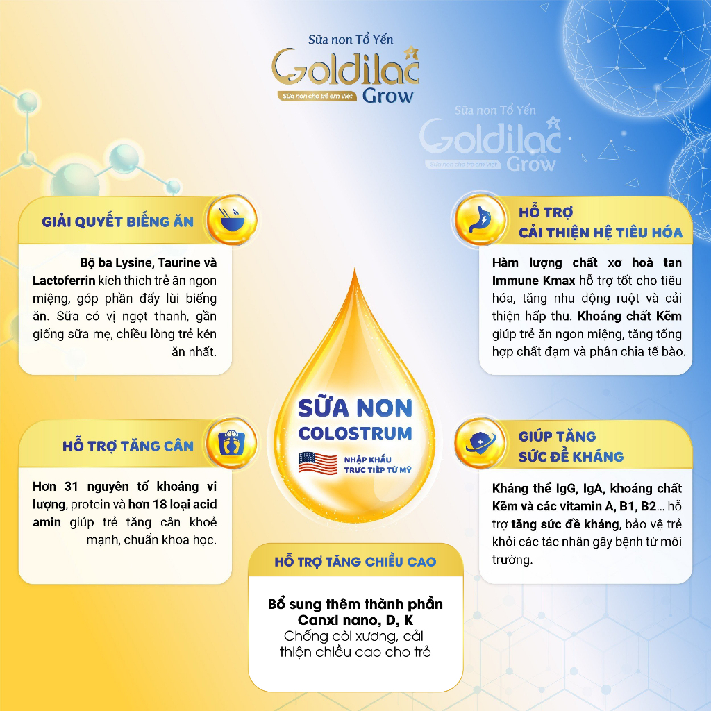 2. CÔNG DỤNG của Sữa non Tổ yến Goldilac Grow :