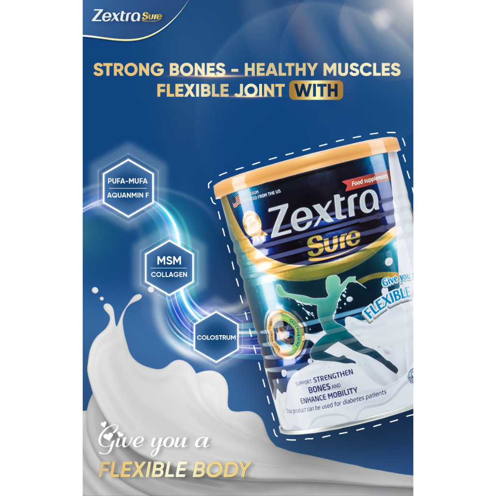 Sữa non xương khớp Zextra Sure được kết hợp từ nhiều dưỡng chất khác nhau gồm: