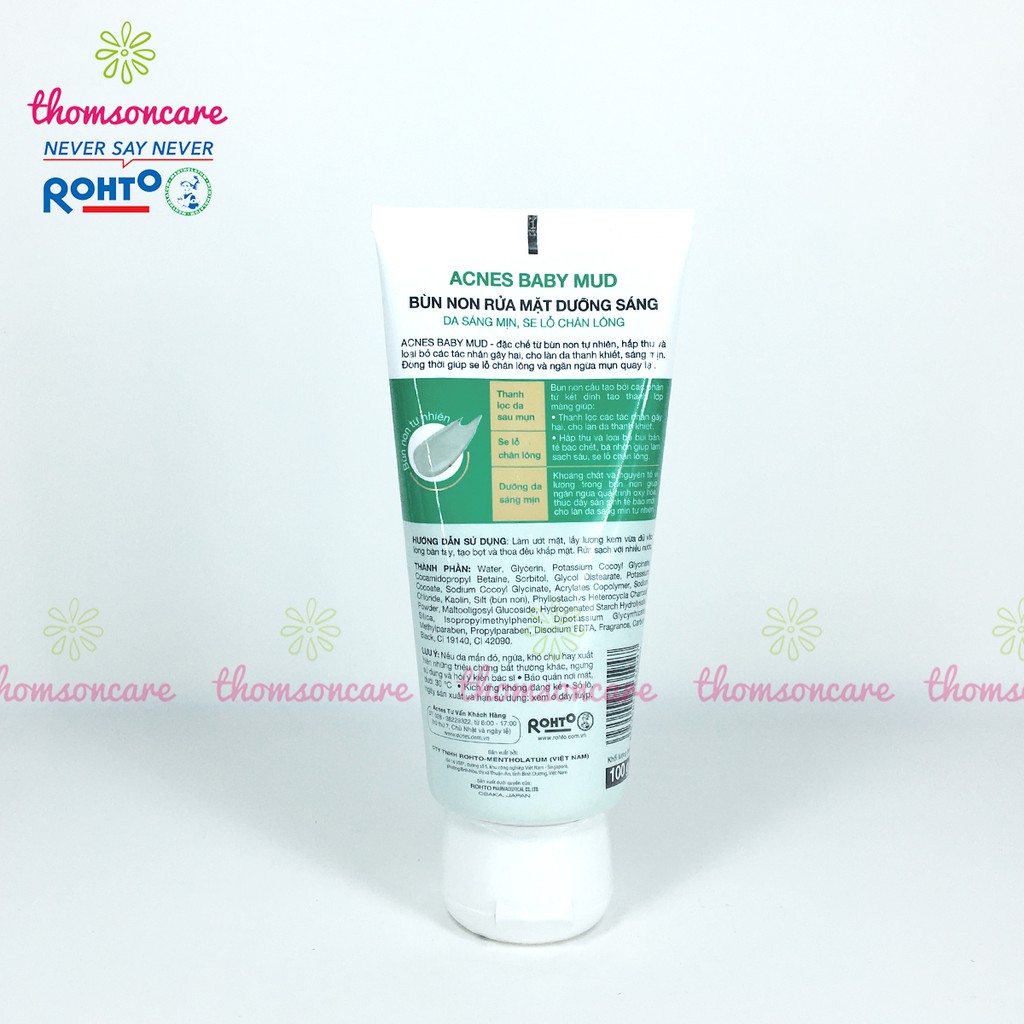 Sữa rửa mặt bùn non, dưỡng trắng da – Acnes Baby Mud Cleanser tuýp 100g ngừa mụn, se lỗ chân lông.