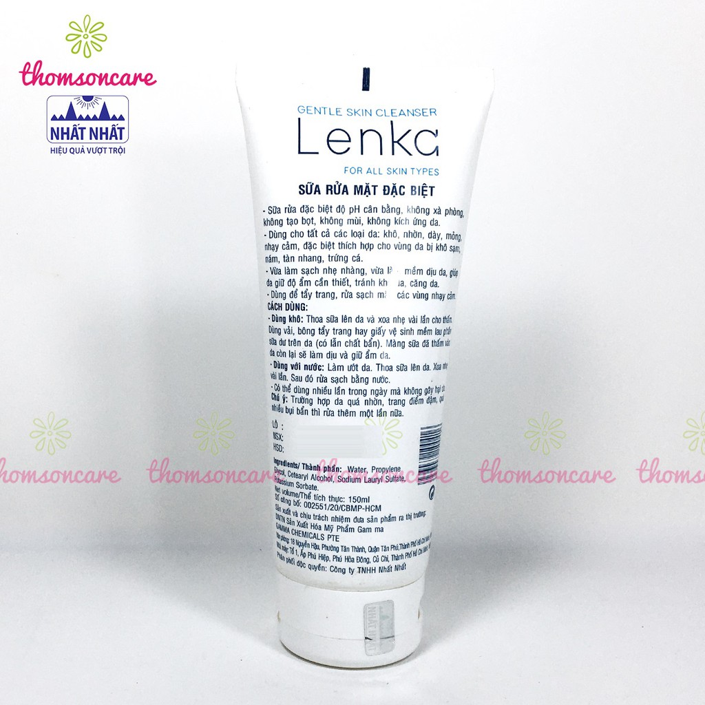 Sữa rửa mặt khô Lenka, rửa mặt không cần nước, tẩy trang, cho da nhạy cảm, SRM không tạo bọt, ko xà phòng.