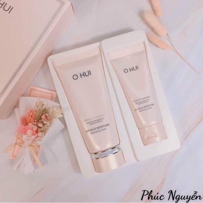 SET SỮA RỬA MẶT OHUI HỒNG MIRACLE MOISTURE CLEANSING FOAM