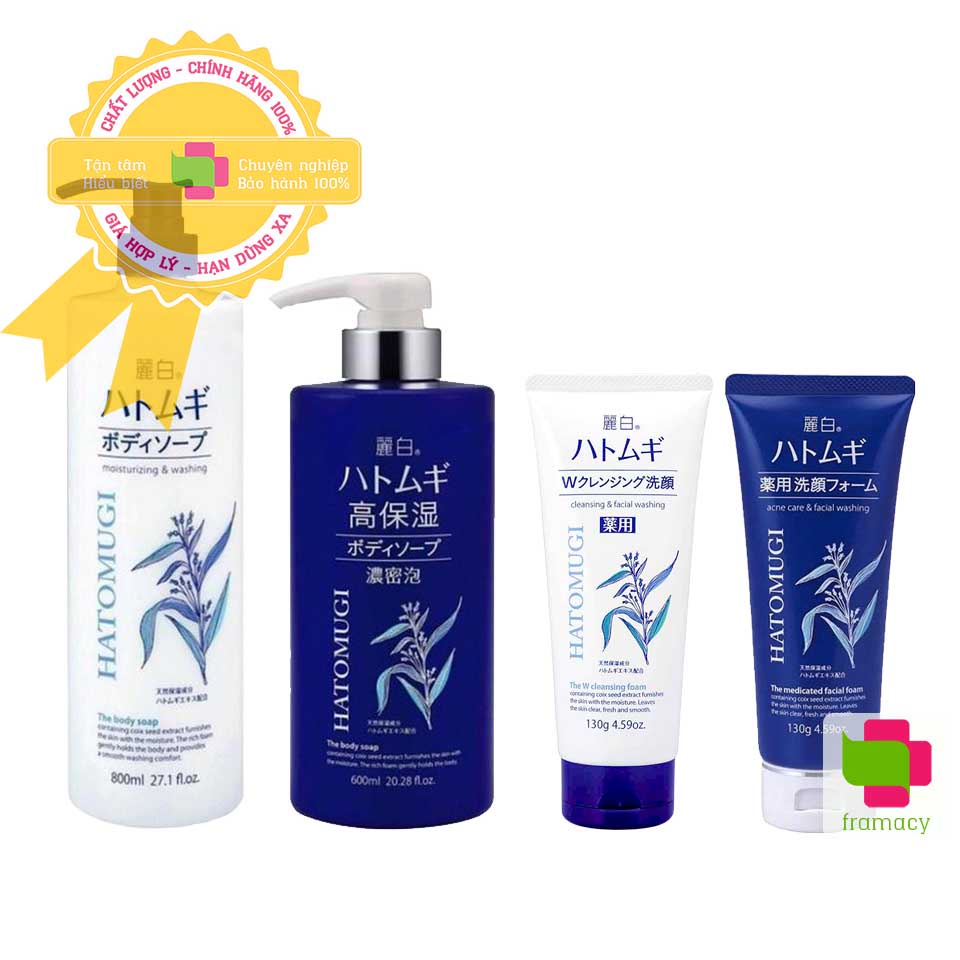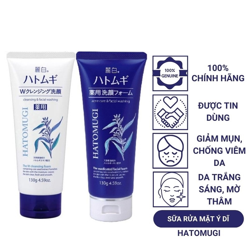 Sữa rửa mặt/sữa tắm ý dĩ giúp trắng da Hatomugi Cleansing Foam/Moisturizing Washing, Nhật Bản (130g/170g/800ml/600ml).