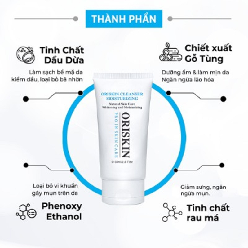 Sữa rửa mặt Oriskin Cleanser Moisturizing ít bọt giúp loại bỏ bụi bẩn, kiểm soát bã nhờn trên bề mặt da, chống lão hóa, dưỡng ẩm, làm dịu da, hỗ trợ ngăn ngừa mụn hiệu quả.