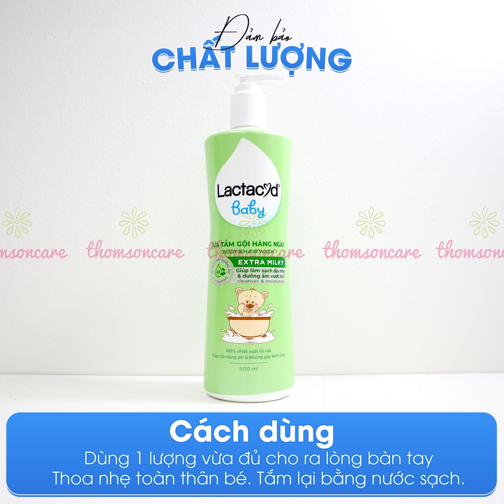 Kết hợp cả Tắm và gội cho bé Lactacyd Milky chai 250ml