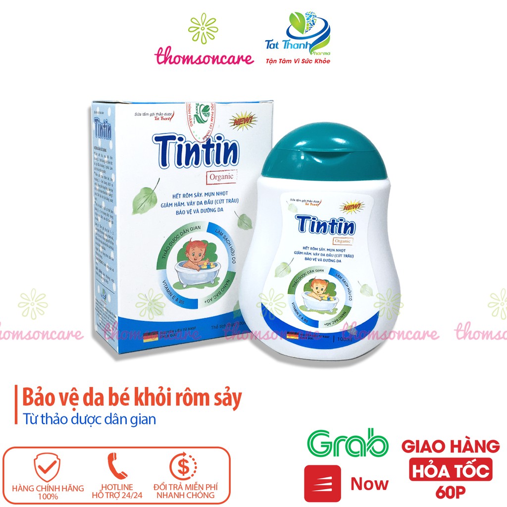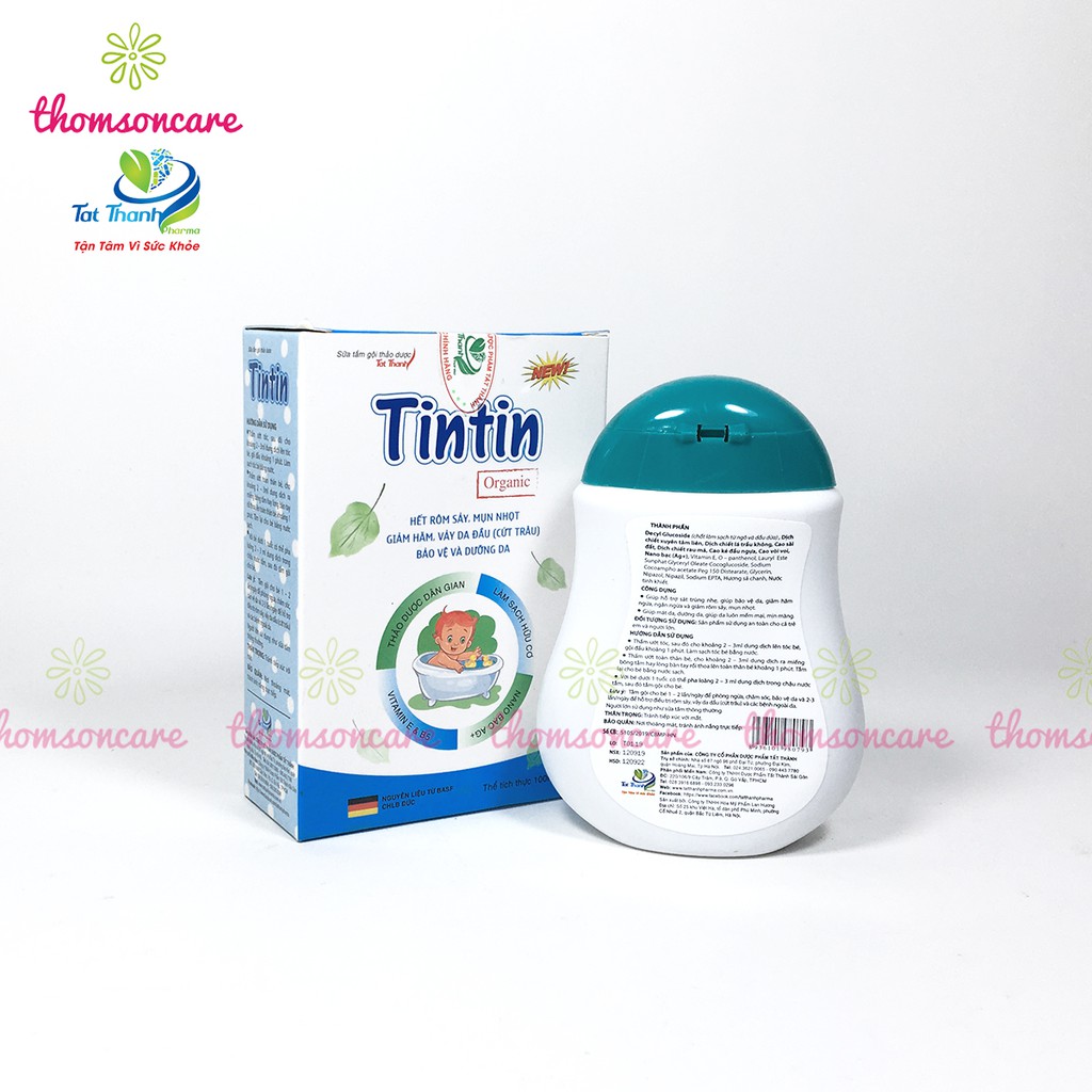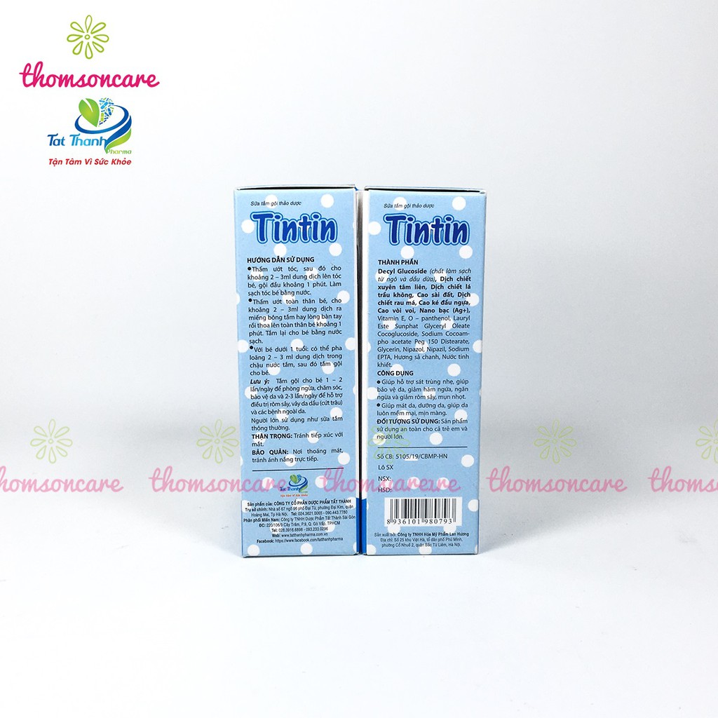 Sữa tắm gội cho bé Tintin – Không gây cay mắt, cho trẻ từ sơ sinh từ thảo dược, giảm rôm sảy, mẩn ngứa Chai 100ml.