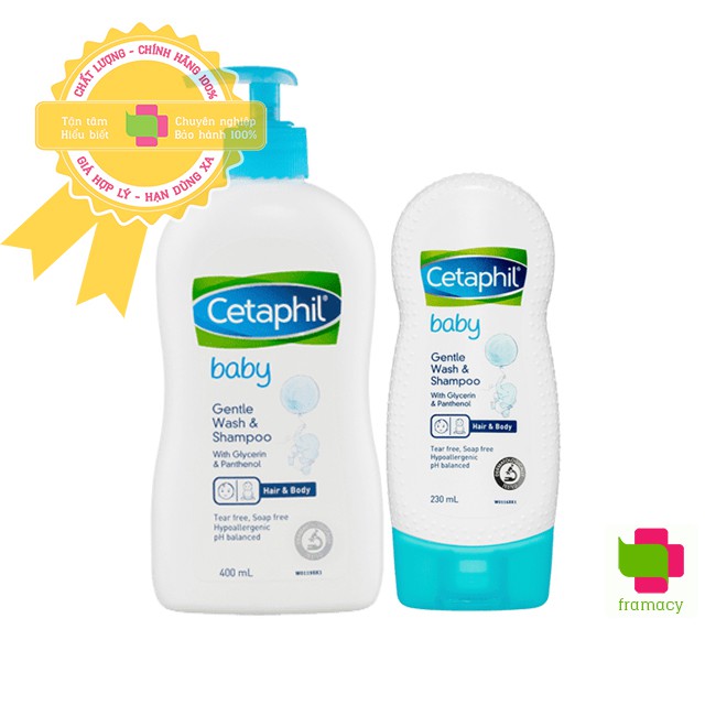 Sữa tắm gội toàn thân 2in1 Cetaphil Baby Wash & Shampoo, Úc (230ml/400ml) cho trẻ từ sơ sinh đến dưới 6 tuổi.