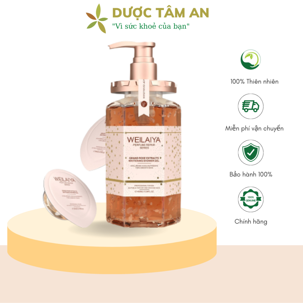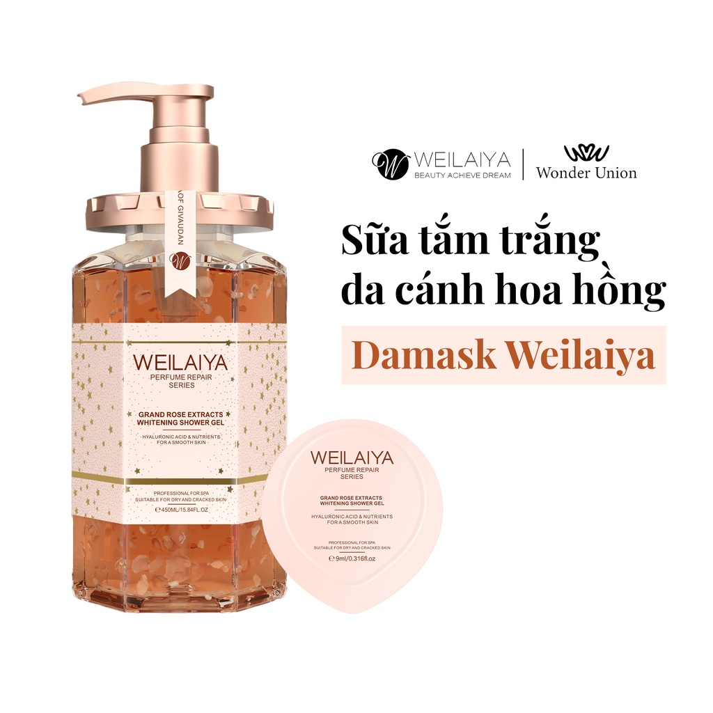 Sữa tắm trắng da cánh hoa hồng Damask Weilaiya Grand Rose Extracts Whitening Shower Gel 450ml tặng ủ trắng 200ml