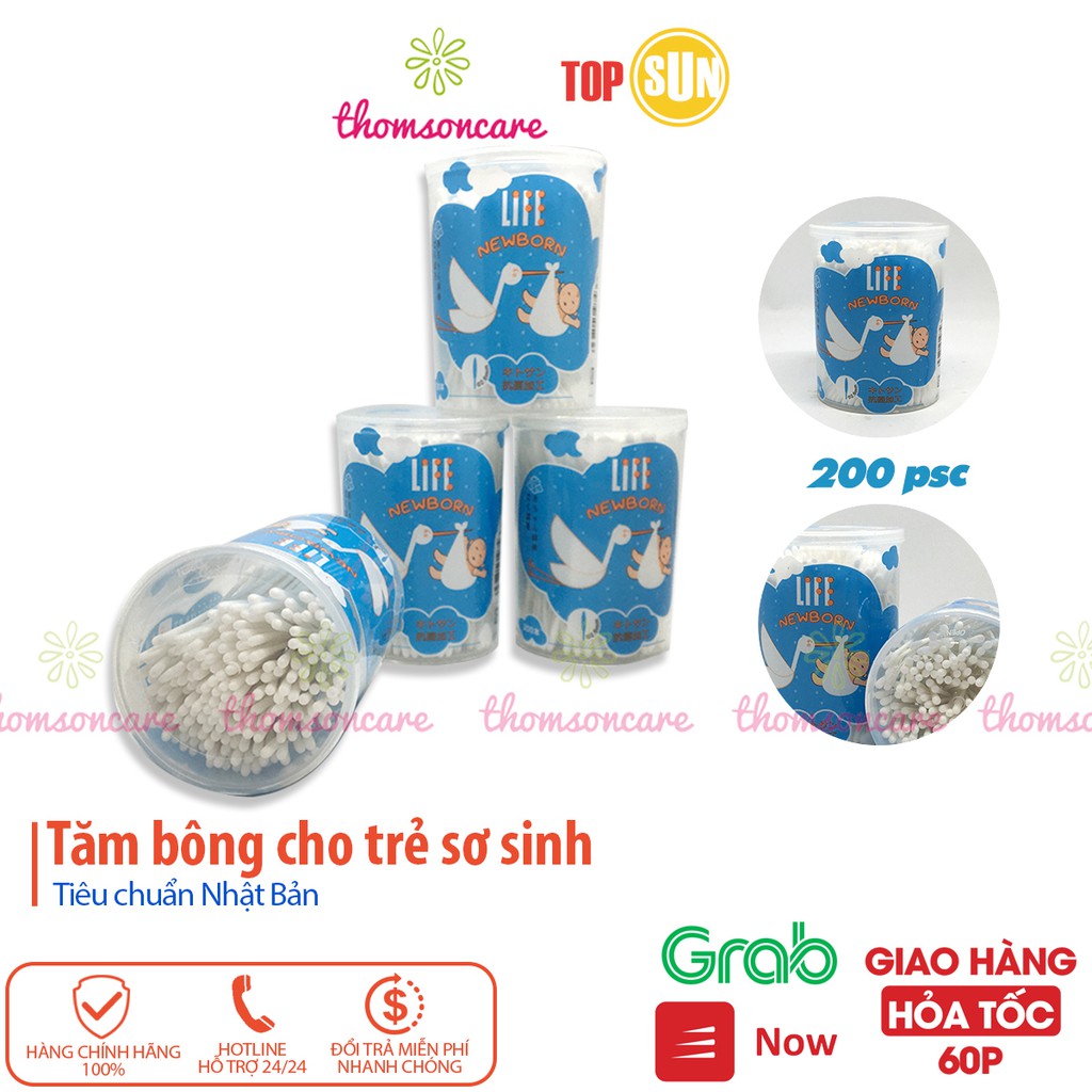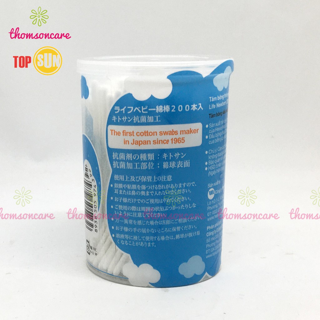 Tăm bông cho trẻ sơ sinh Life New born thân giấy, công nghệ Nhật Bản Hộp bông ngoáy tai 200 que vệ sinh cho bé.