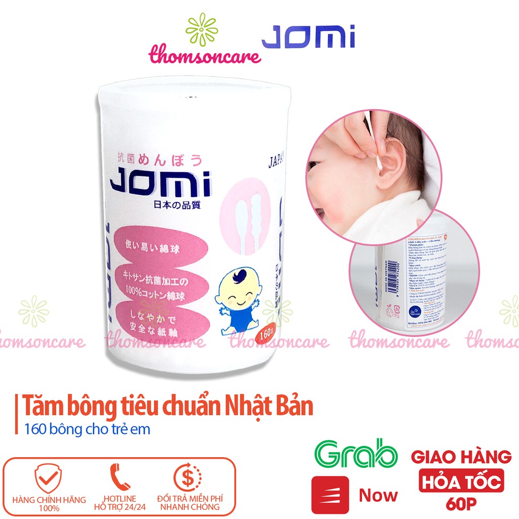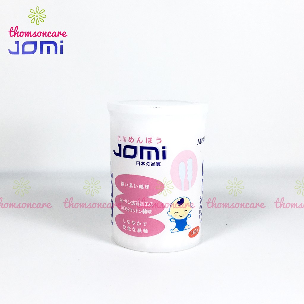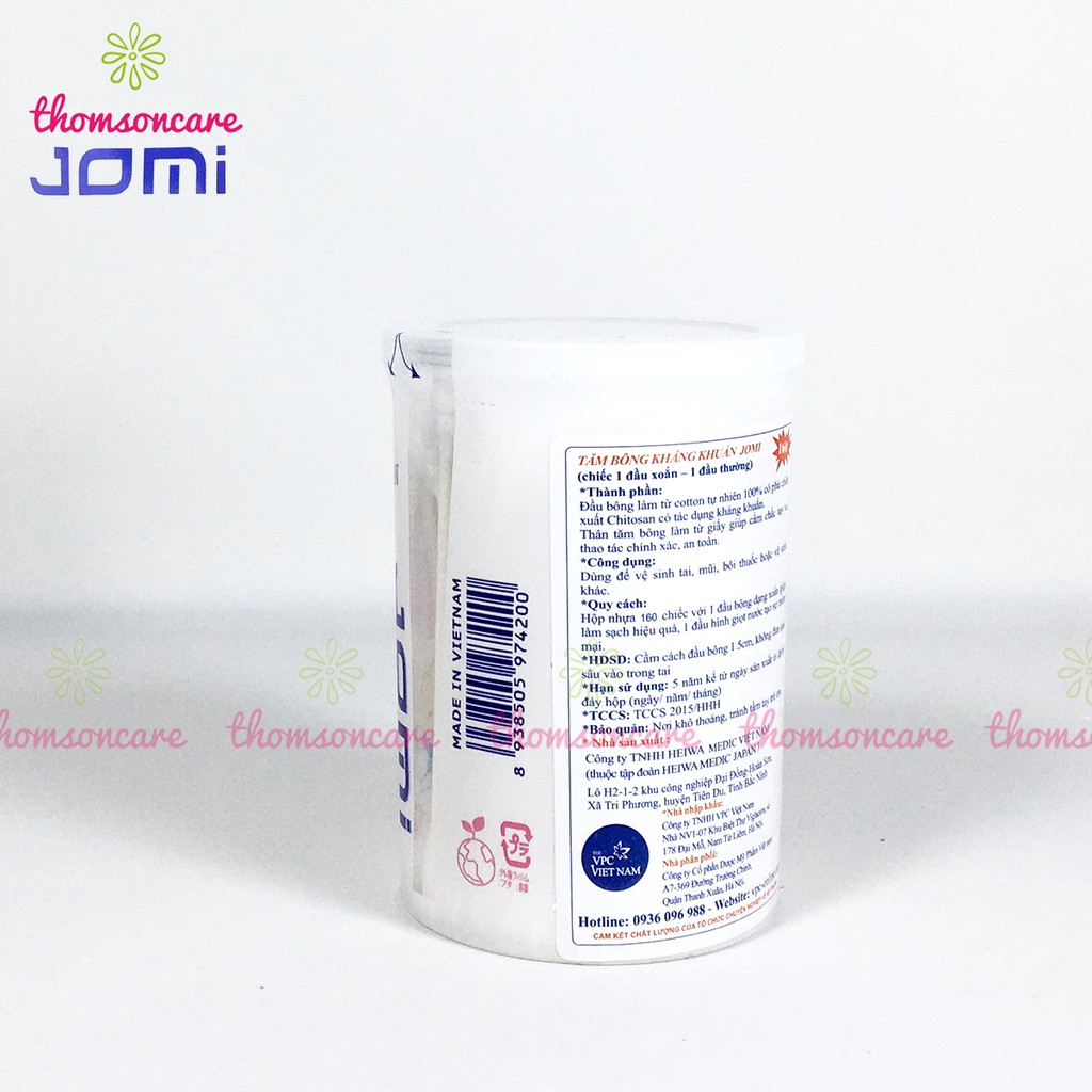 Tăm bông Jomi cho bé Lọ 160 que, vệ sinh tai một đầu tròn, đầu xoắn, bông tăm ngoáy tai sạch cho trẻ từ Nhật Bản.