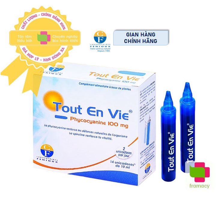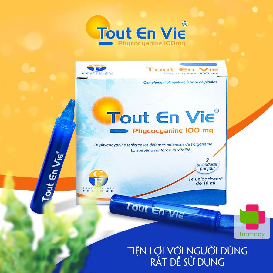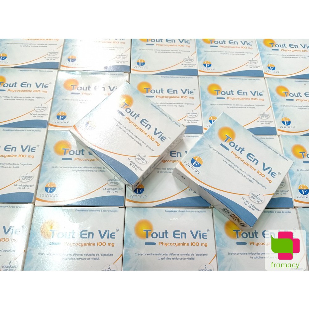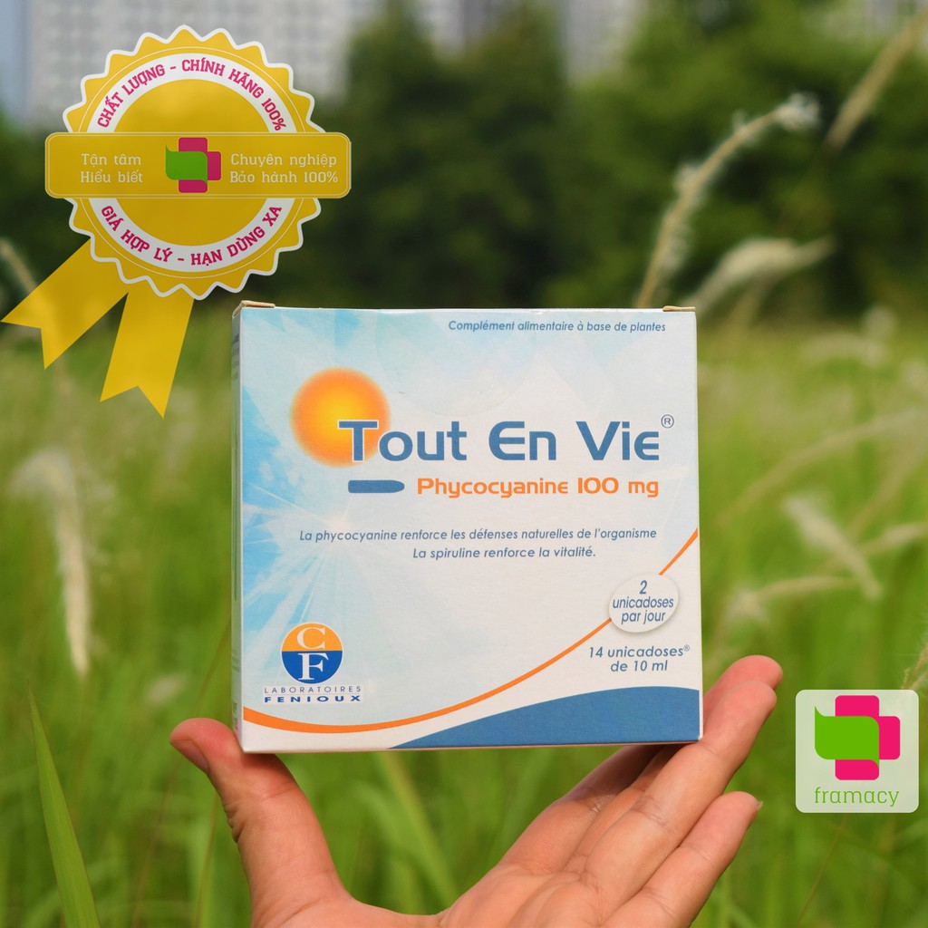 Tảo biển Tout En Vie, Pháp (14 ống dạng nước) kèm vitamin C giúp chăm sóc da, tốt cho huyết áp, tim mạch, tiểu đường.