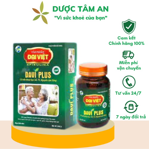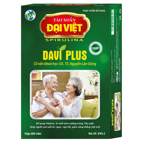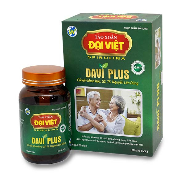 Tảo viên Davi Plus là thực phẩm bổ sung hoàn hảo cho người cao tuổi đến từ tảo xoắn Spirulina Đại Việt. Sản phẩm có chứa 80% tảo xoắn Spirulina cùng nhiều dưỡng chất khác. Sản phẩm do tảo xoắn Đại Việt sản xuất.