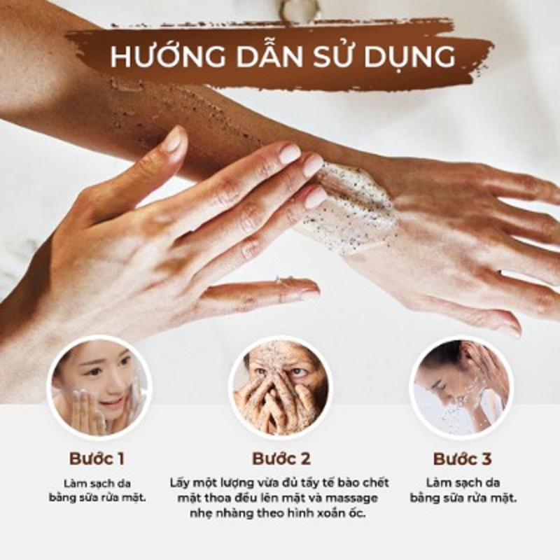 – Bước 2: Lấy một lượng vừa đủ tẩy tế bào chết mặt thoa đều lên mặt và massage nhẹ nhàng theo hình xoắn ốc.