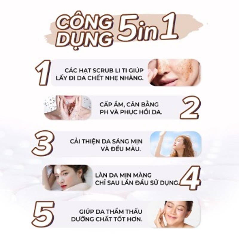 Giúp tẩy da chết, các lớp sừng hóa, bụi bẩn, bã nhờn trên da một cách nhẹ nhàng giúp da luôn thông thoáng.