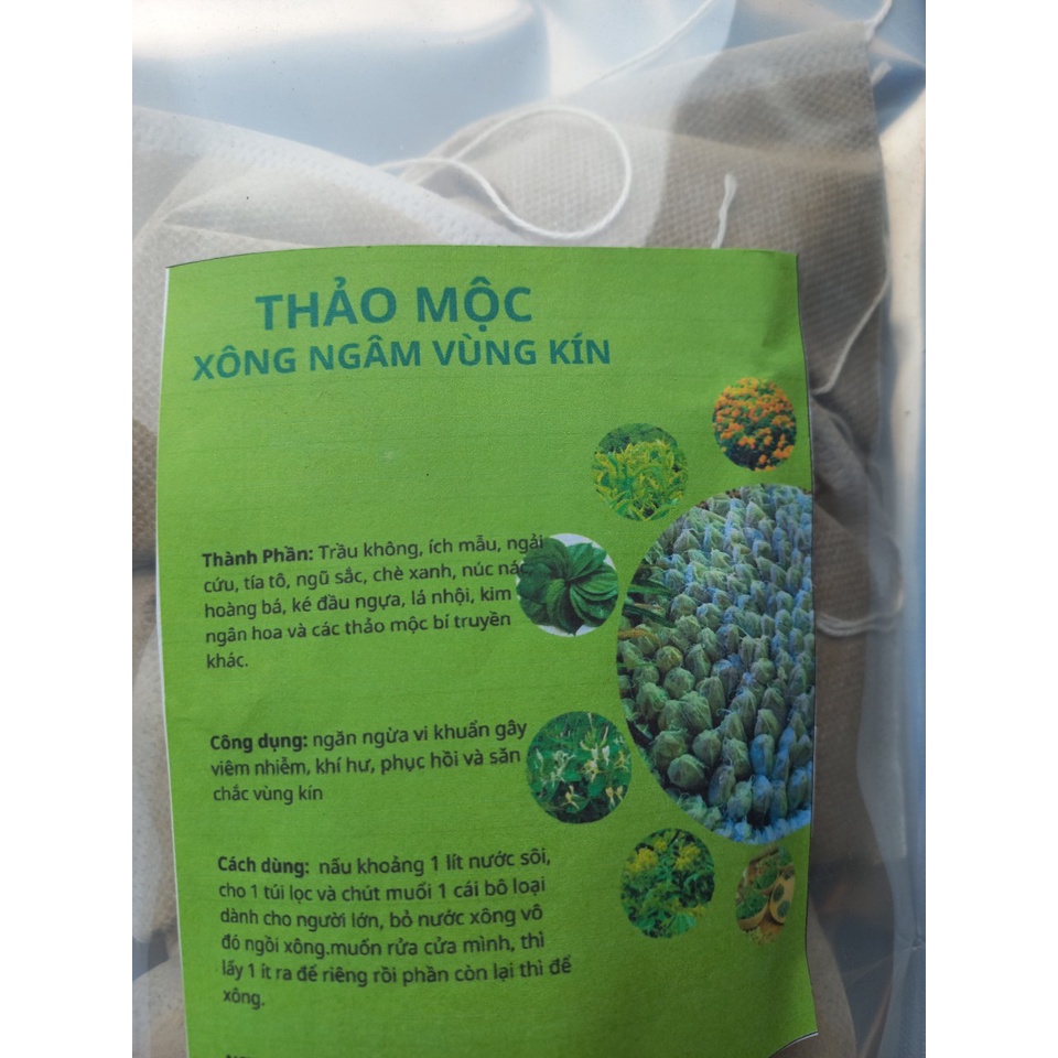 Cách dùng: nấu khoảng 1 lít nước sôi, cho 1 túi lọc và chút muối 1 cái bô loại dành cho người lớn, bỏ nước xông vô đó ngồi xông. muốn rửa cửa mình, thì lấy 1 ít ra để riêng rồi phần còn lại thì để xông.