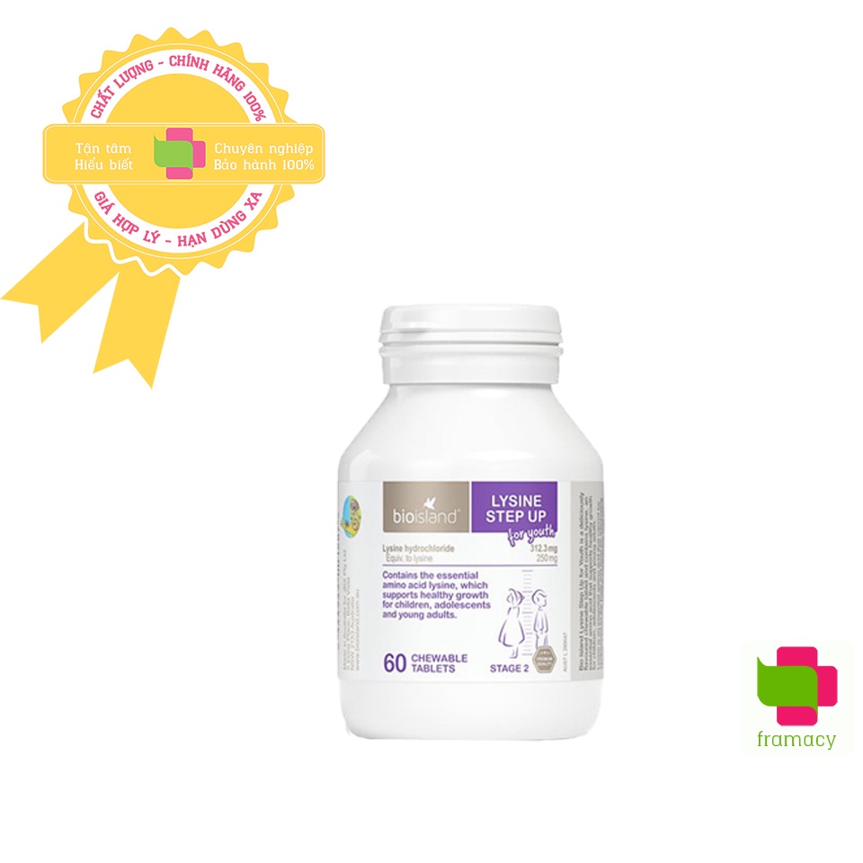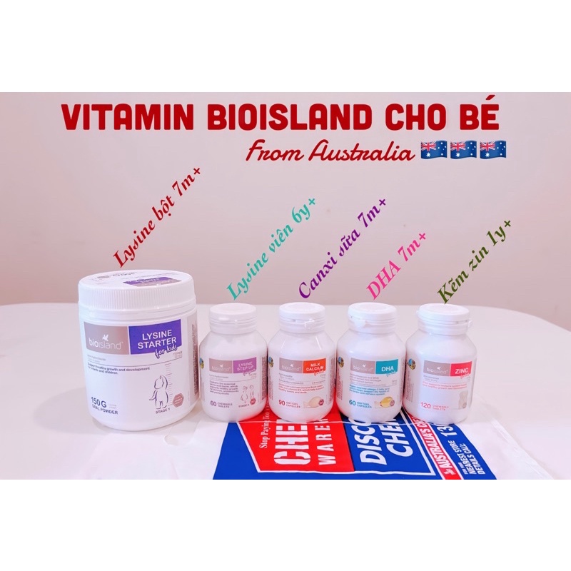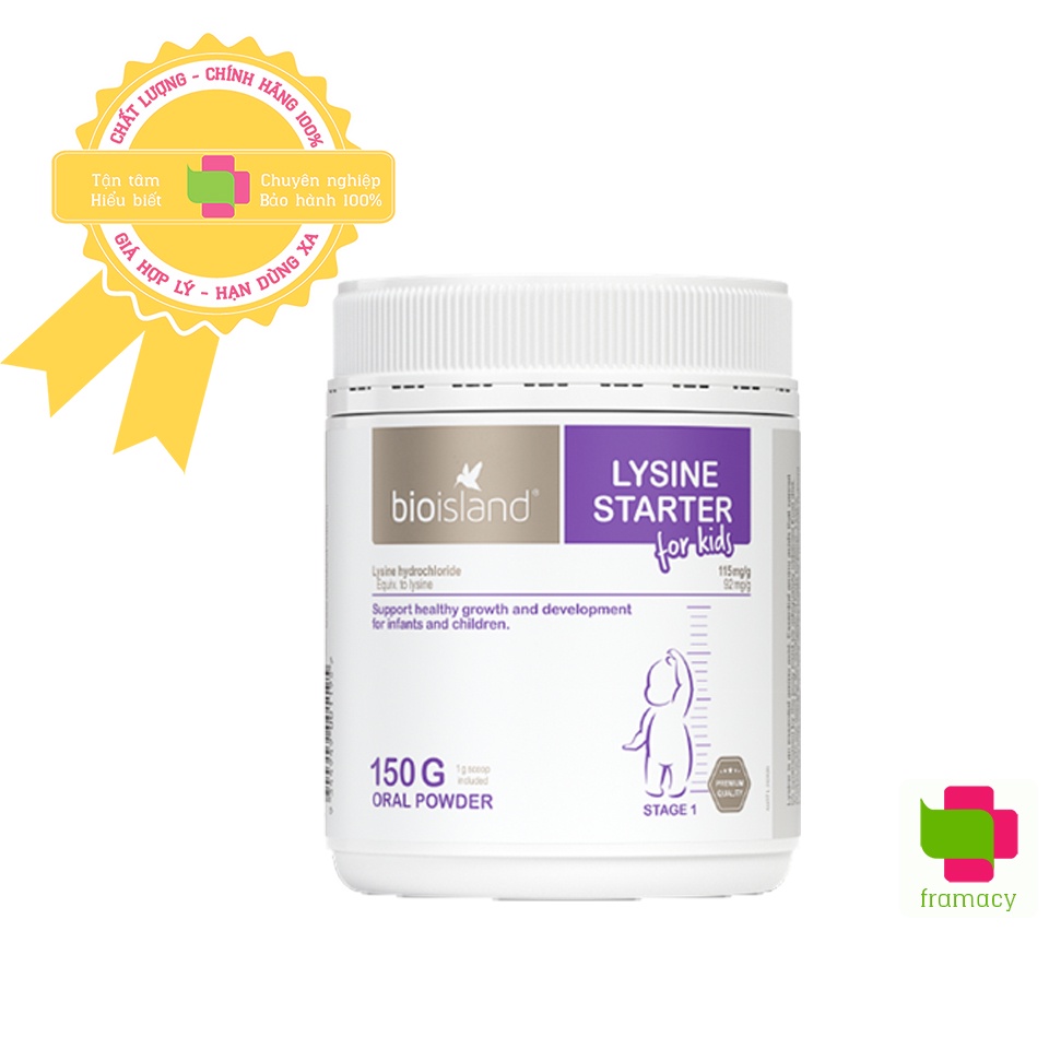 Lysine là một trong 12 axit amin thiết yếu cần có trong bữa ăn hằng ngày. Nó hỗ trợ tăng cường hấp thụ và duy trì Canxi, ngăn cản sự bài tiết khoáng chất này ra ngoài cơ thể. Vì vậy, lysine có tác dụng hỗ trợ tăng trưởng chiều cao. Tuy nhiên, cơ thể không tự tổng hợp được chất này mà phải được cung cấp qua thực phẩm. Bioisland Lysine là thực phẩm bổ sung Lysine giúp tăng cường chiều cao cho trẻ được ưa chuộng tại Úc, với hai dạng bột (dành cho trẻ từ 7 tháng – 6 tuổi) và dạng viên (trẻ trên 6 tuổi).