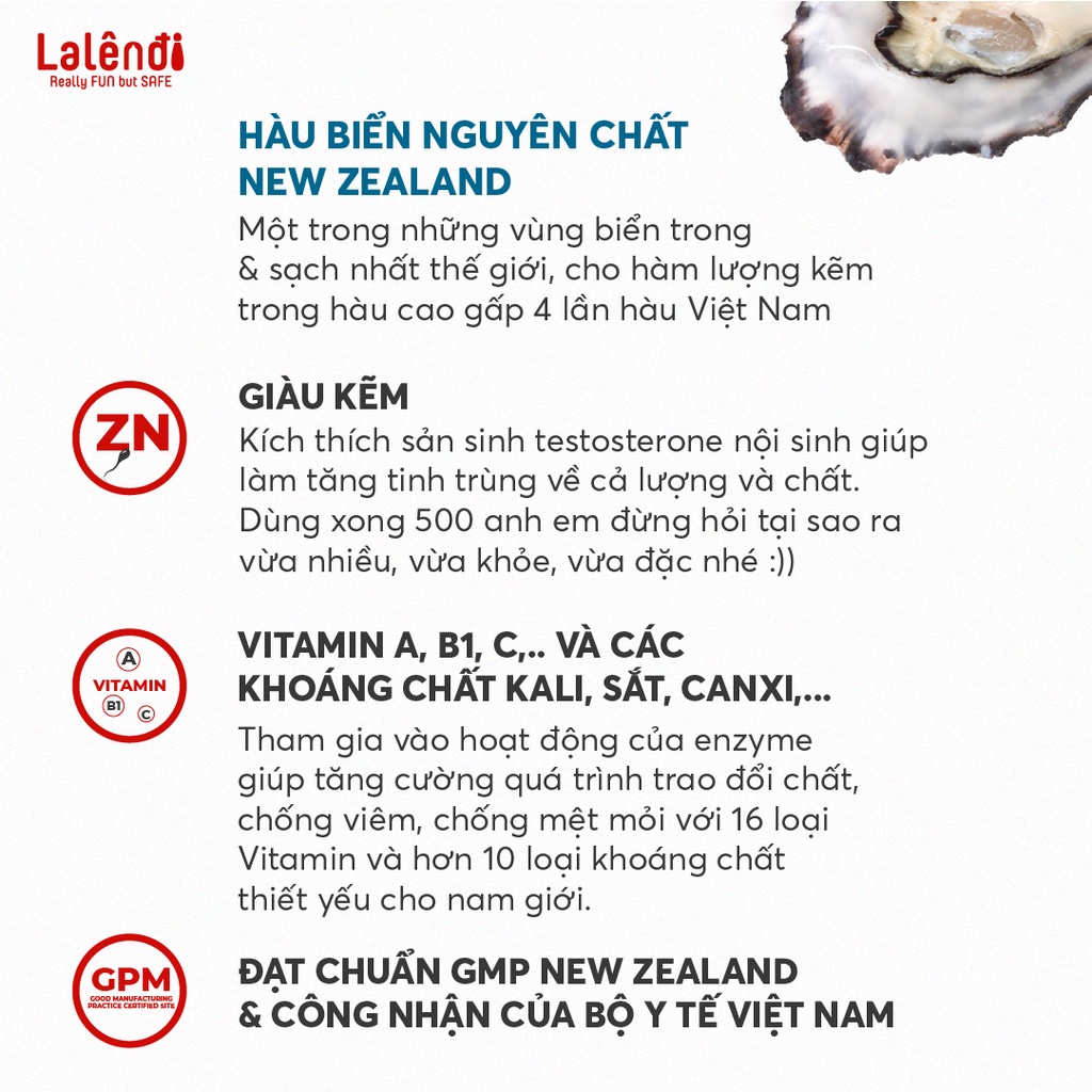 – Bổ sung tinh chất từ con hàu, giúp tăng cường năng lực sinh lý cho đàn ông.
