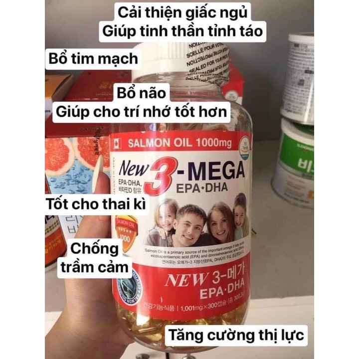 Tinh Dầu Cá Hồi Omega 3 Gia Đình Hàn Quốc Chính Hãng Hộp 300 Viên