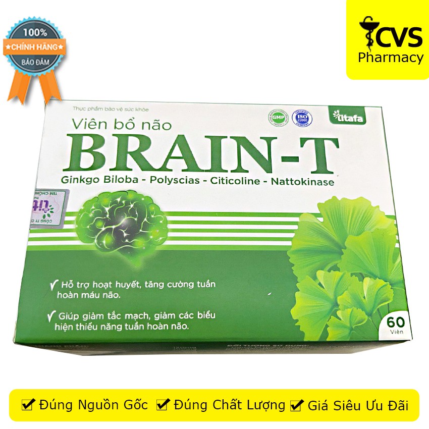 Viên bổ não BRAIN-T / Brain T – Viên uống hỗ trợ hoạt huyết, tăng cường tuần hoàn máu não – cvspharmacy