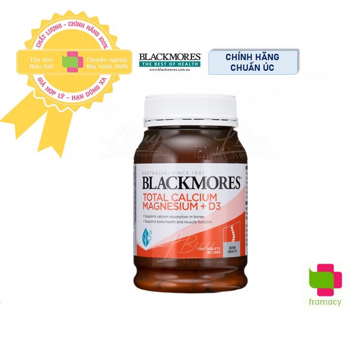 Viên bổ sung canxi Blackmores Total Calcium & Magnesium + D3, Úc (200 viên) bổ trợ xương khớp cho trẻ nhỏ và người lớn.