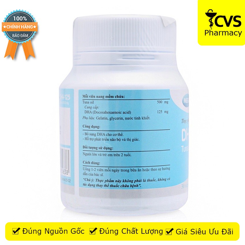 Viên dầu cá ngừ DHA-125 (30 viên) tinh khiết – Hỗ trợ phát triển não bộ và thị giác – cvspharmacy