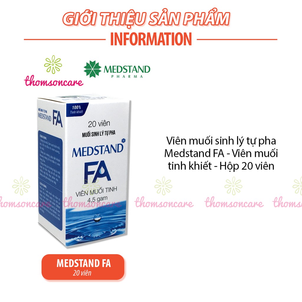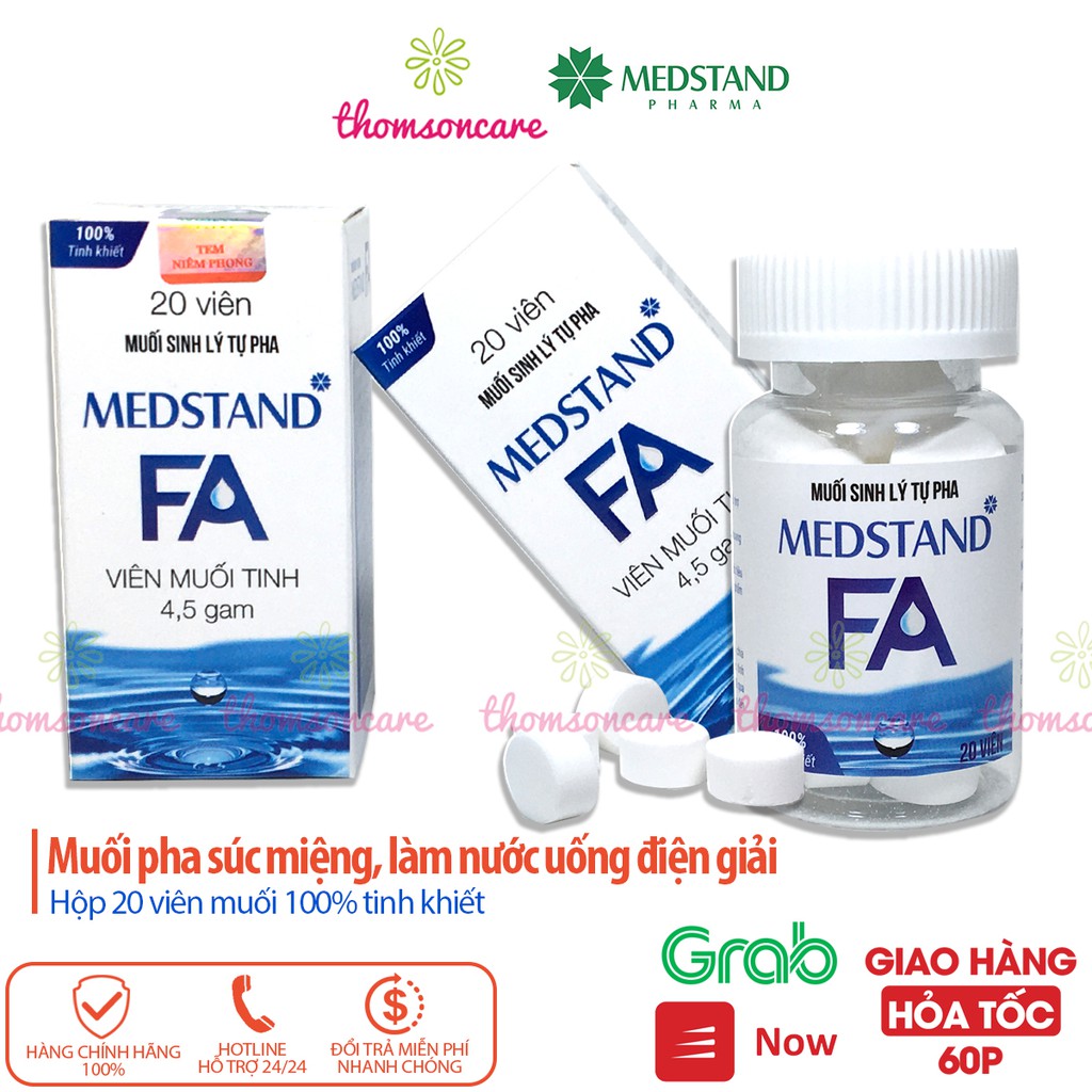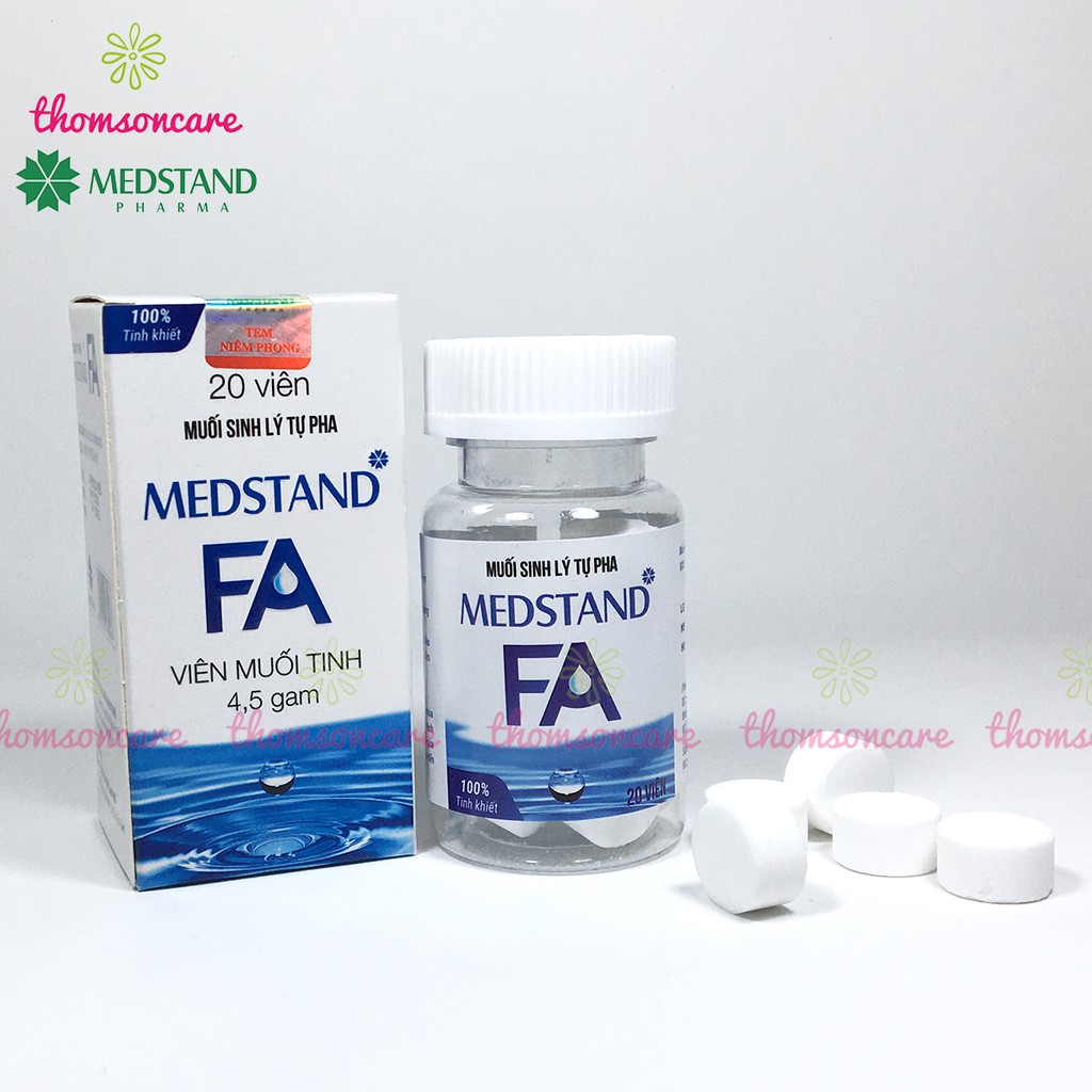 Viên muối sinh lý tự pha Medstand – Muối viên tinh khiết – Hộp 20 viên súc miệng, xúc họng, rửa vết thương.