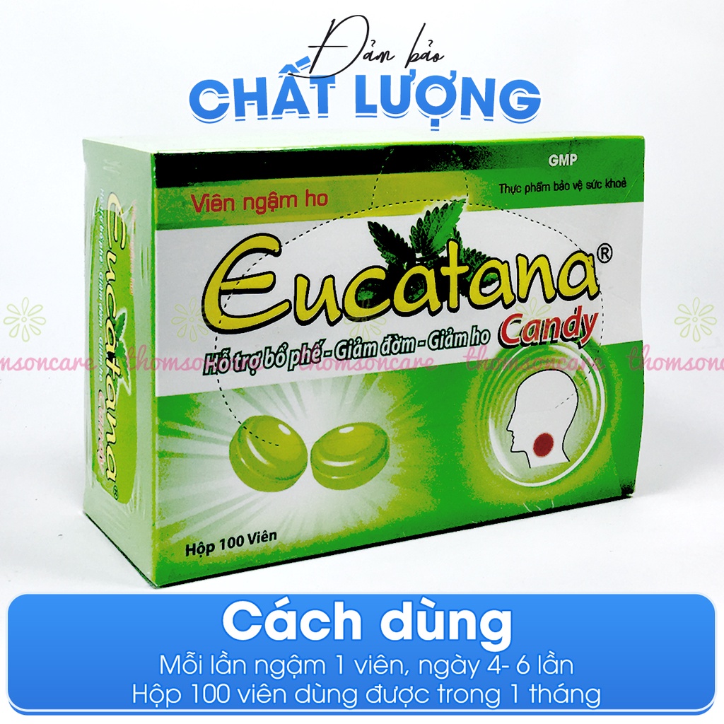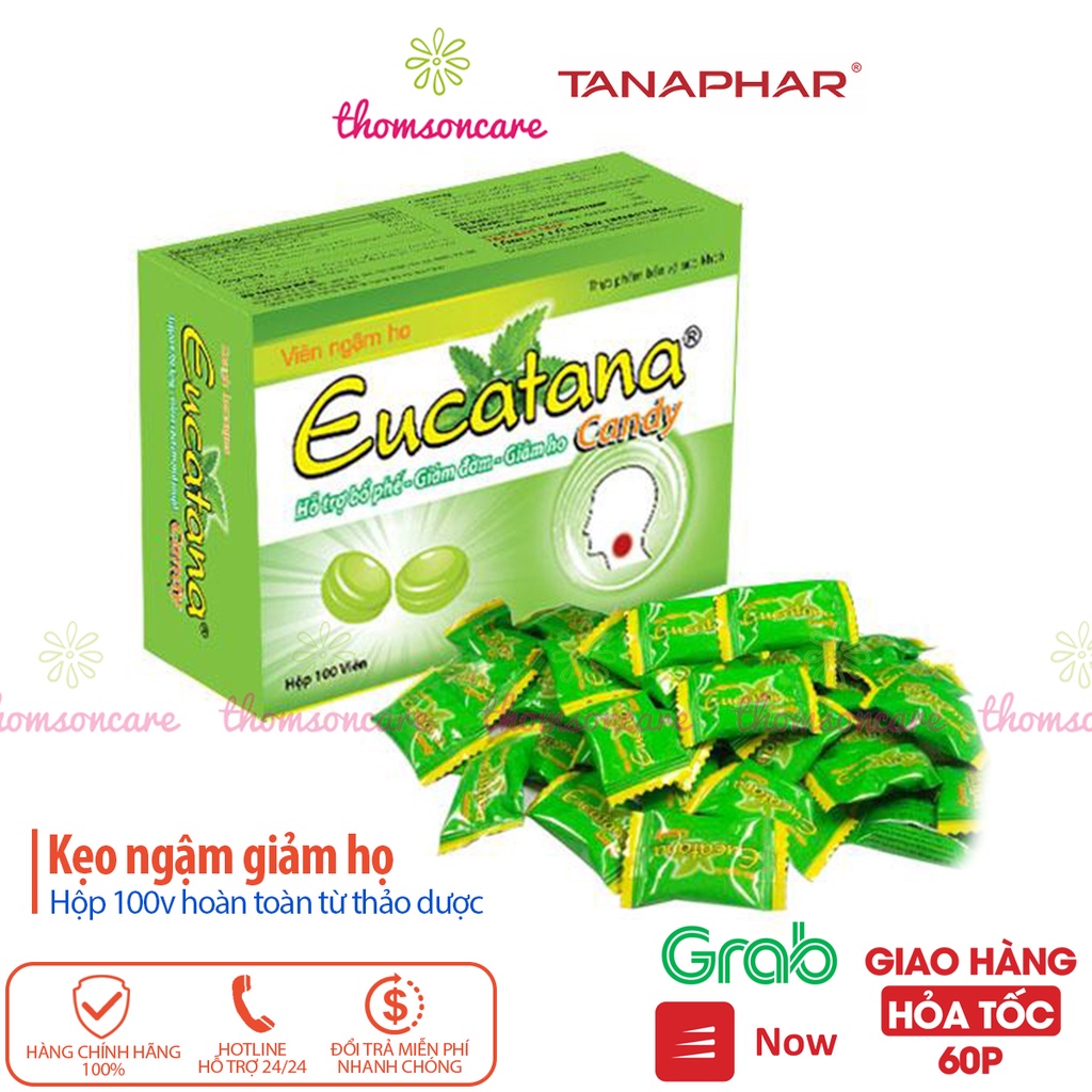 Viên ngậm ho thảo dược Eucatana hộp 100 viên, hỗ trợ giảm đau rát họng, kết hợp xịt họng xuyên tâm liên Euca tana.