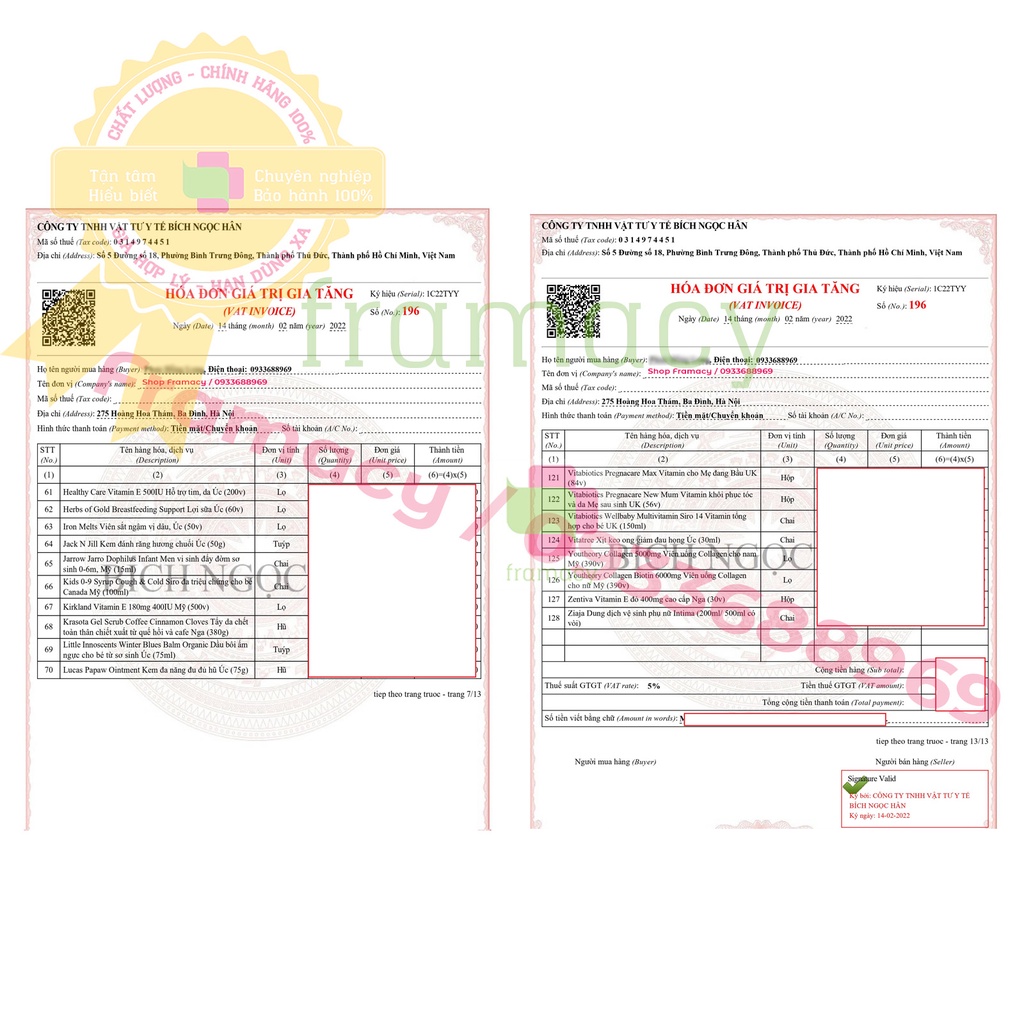 • Framacy chuyên bán sỉ và lẻ các sản phẩm chăm sóc sức khỏe 100% chính hãng với đủ hóa đơn, giấy tờ, nếu không đúng cam kết đền 100% đơn hàng. Hàng chúng tôi có hạn sử dụng xa, chất lượng, giá hợp lý. Đội ngũ tư vấn và phục vụ tận tâm, hiểu biết, chuyên nghiệp