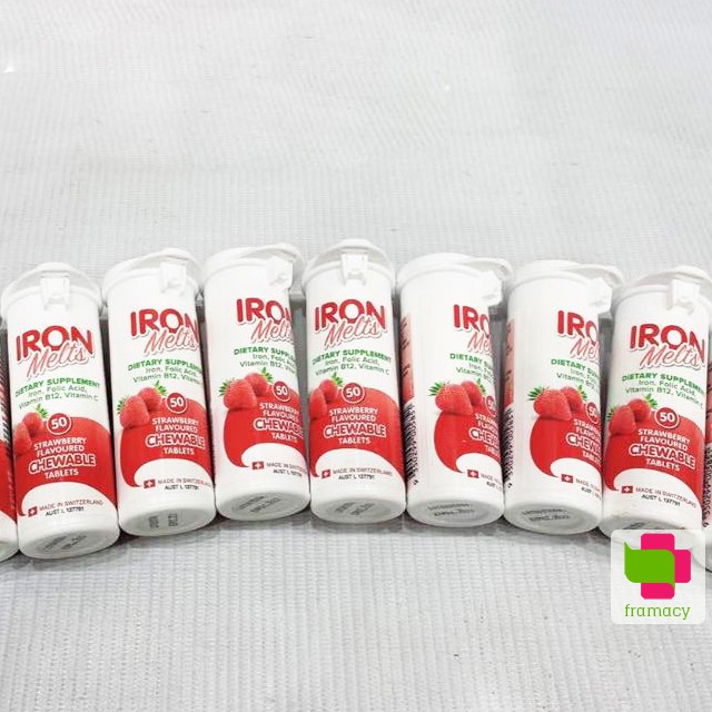 Sắt là nguyên tố vi lượng rất quan trọng trong cơ thể, đặc biệt là nó là nguyên liệu để xây dựng tế bào hồng cầu, tạo máu, vận chuyển oxy đến các bộ phận trong cơ thể, duy trì hô hấp tế bào, hệ miễn dịch, và sự phát triển trí não. Thiếu sắt ở mọi độ tuổi, mọi đối tượng đều gây nên những hiểm họa khôn lường. Đầu tiên là nguy cơ thiếu máu, bà bầu thiếu sắt dễ bị sinh non, con yếu ớt, trẻ em thiếu sắt cơ bắp kém phát triển, miễn dịch kém. Sắt có nhiều trong các thực phẩm như thịt bò, ngũ cốc, trứng, các loại rau màu đậm, các loại hạt. Tuy nhiên với trẻ biếng ăn, phụ nữ mang thai, hoặc người bị thiếu máu, bổ sung sắt bằng Viên ngậm Iron Melts Chewable là rất cần thiết. Sản phẩm của Thụy Sĩ được nghiên cứu và điều chế an toàn, công thức bổ sung vitamin C, B12 và acid folic tăng khả năng hấp thu sắt, bổ máu, không gây táo bón, phù hợp với mọi đối tượng đang bị thiếu sắt (kể cả bà bầu), thiếu máu.