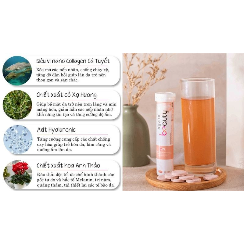Viên sủi trắng da AGAIN BEAUTY – Collagen_Trẻ hóa da mờ nám chống lão hóa chống oxy hóa da