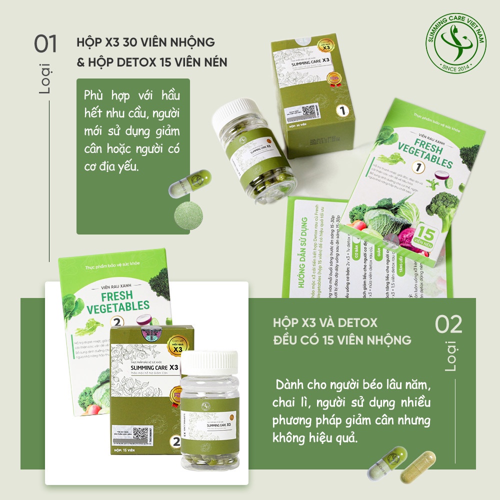 Viên Thảo Mộc Giảm Cân Slimming Care X3 Cải Tiến – Giảm Cân An Toàn – Hộp 15 & 30 viên (Tặng kèm viên rau củ Detox)-Tổng Kho Úc