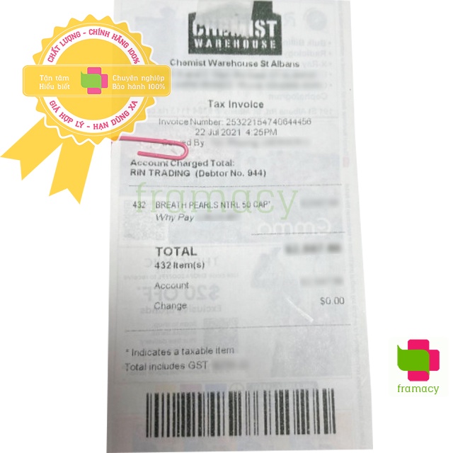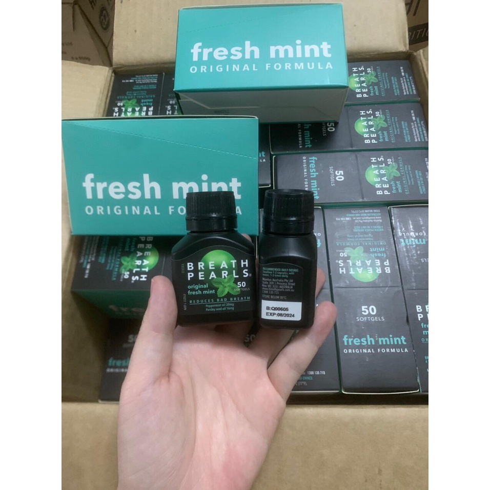 Viên thơm miệng thảo dược Breath Pearls, Úc (50 viên) giảm hôi miệng cho người lớn, bà bầu và trẻ nhỏ trên 6 tuổi.