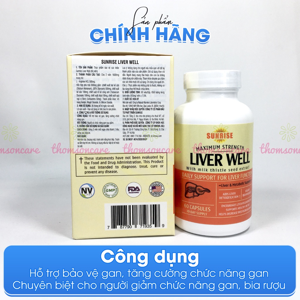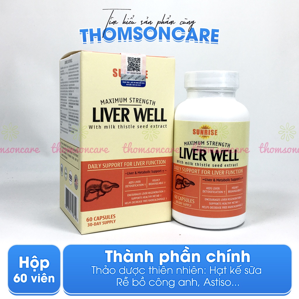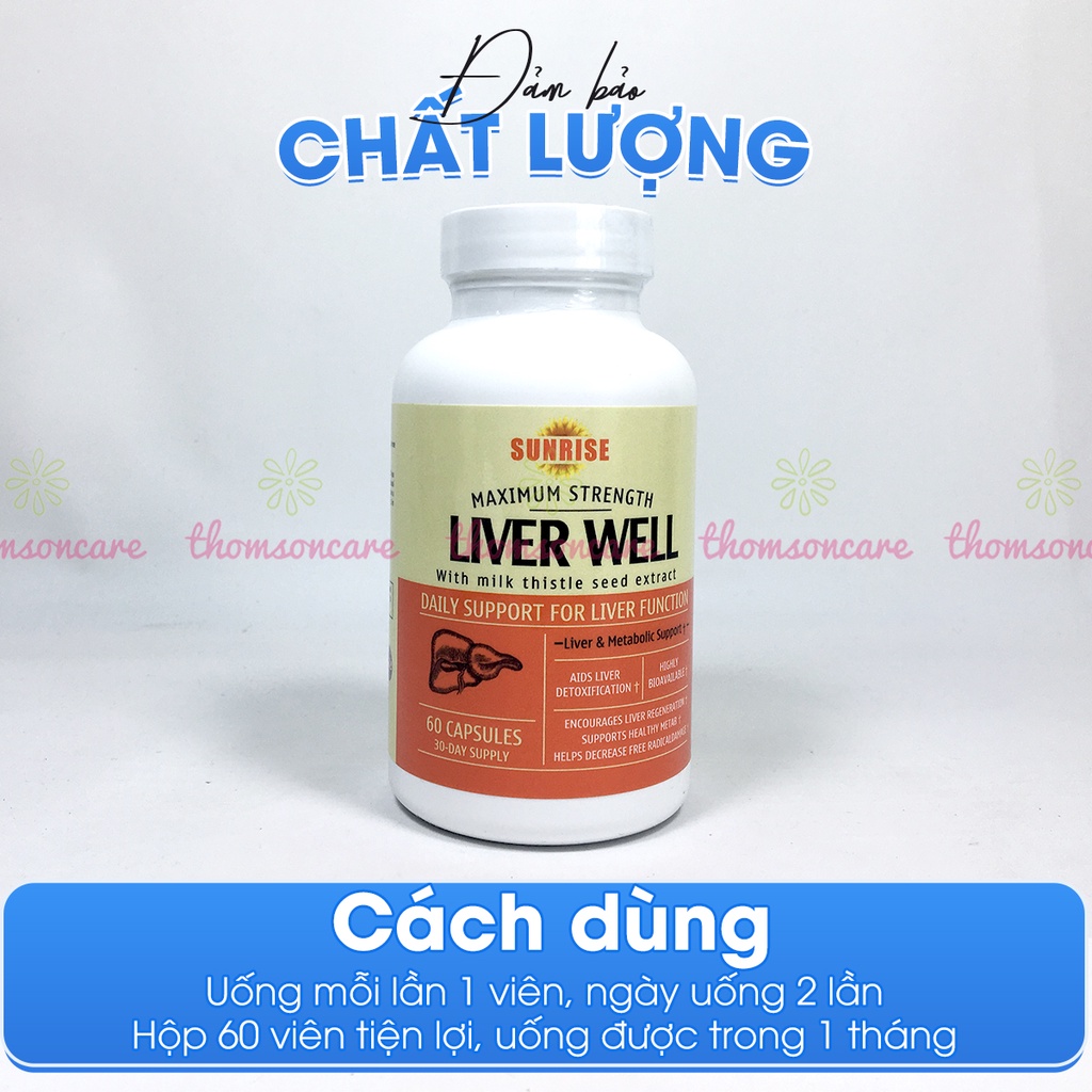 Viên uống bổ gan Sunrise Liver Well hạ men gan bảo vệ tế bào gan tăng cường chức năng gan hộp 60 viên nhập khẩu Mỹ
