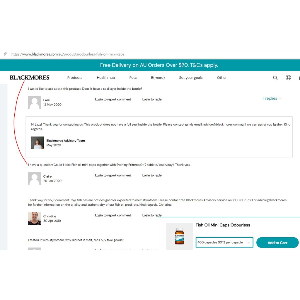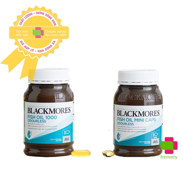 Viên uống dầu cá không mùi Blackmores Fish Oil Odourless, Úc (400 viên) bổ trợ sức khỏe tim mạch mắt não mọi lứa tuổi.