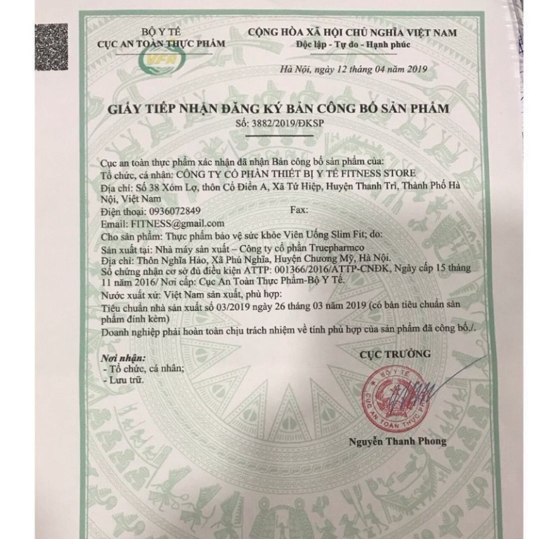 Đơn vị nhập khẩu: CÔNG TY TNHH THIẾT BỊ Y TẾ FITNESS STORE