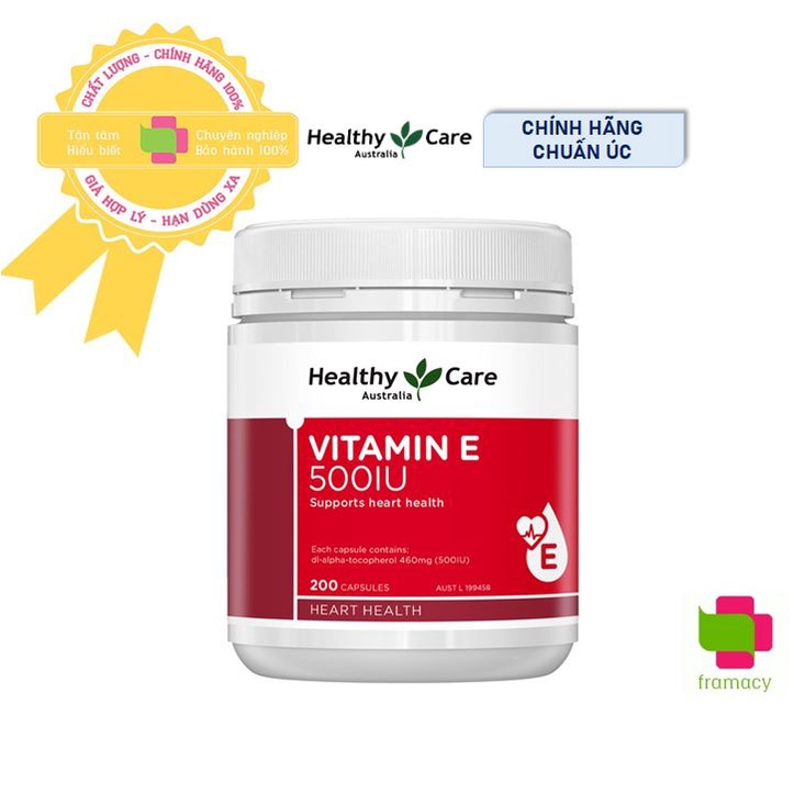 Hầu hết mọi người đều biết vitamin E rất cần thiết cho cơ thể, đặc biệt là với những người ít ăn chất béo. Nhưng không phải ai cũng bổ sung đầy đủ dưỡng chất quan trọng này. Một phần vì chưa nắm rõ thông tin, phần khác do quá bận rộn nên ít thời gian chăm lo cho sức khỏe. Healthy Care Vitamin E 500IU là nhãn hàng nổi tiếng hàng đầu tại Úc sẽ giúp bạn bổ sung 500IU Vitamin E tổng hợp mỗi ngày để có hệ tim mạch, sinh sản hoạt động tốt; đồng thời giúp đẹp da, mượt tóc.