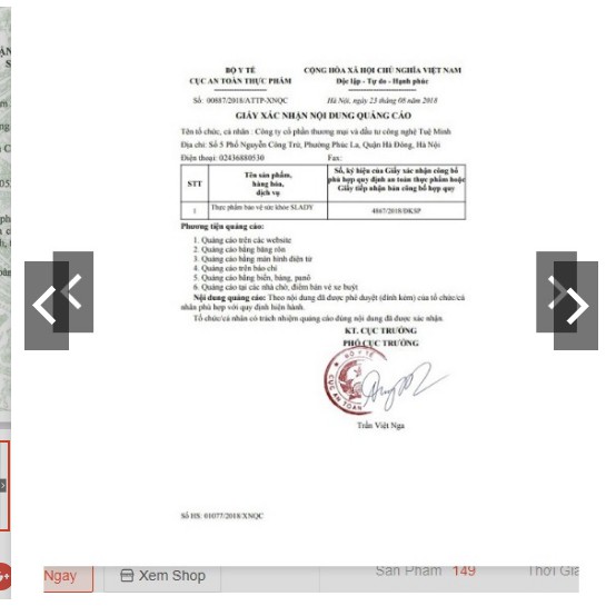 Sản phẩm SLady đã được Bộ Y tế cấp phép chứng nhận an toàn số 4867/2018/ĐKSP cho phép lưu hành trên tất cả các hiệu thuốc toàn quốc.