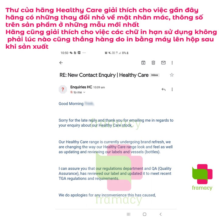 • Framacy chuyên bán sỉ và lẻ các sản phẩm chăm sóc sức khỏe 100% chính hãng với đủ hóa đơn, giấy tờ, nếu không đúng cam kết đền 100% đơn hàng. Hàng chúng tôi có hạn sử dụng xa, chất lượng, giá hợp lý. Đội ngũ tư vấn và phục vụ tận tâm, hiểu biết, chuyên nghiệp