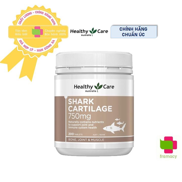 Nhiều nghiên cứu khoa học cho thấy, sụn vi cá mập có chứa chất Chondroitin Sulfat có khả năng tăng tính bền vững cho những sợi tạo keo nội bào, ngăn ngừa thoái hóa tế bào, tăng đàn hồi cho mô liên kết, và chống lão hóa. Từ đó Chondroitin Sulfat trong sụn vi cá mập có thể ngăn ngừa và hỗ trợ điều trị bệnh xương khớp, nó tham gia vào quá trình hình thành cấu trúc màng tế bào, là thành phần cấu tạo của các sợi chun ở mạch máu lớn, có rất nhiều ở mô sụn và xương, cho nên đảm bảo xương khớp chắc khỏe và đàn hồi. Hiểu được điều đó, Shark Cartilage 750mg của hãng Healthy Care được lấy vây của loài cá biển sâu trong lòng đại đương tại Úc, giúp cung cung cấp hàm lượng lớn các thành phần đóng vai trò quan trọng trong hoạt động và sự ổn định của xương khớp và tim mạch. Viên uống Shark Cartilage 750mg có công dụng hỗ trợ các vấn đề xương khớp, hỗ trợ phòng các vấn đề liên quan tới mắt, bồi bổ cơ thể, tốt cho hệ tim mạch, tăng cường hệ miễn dịch hiệu quả.